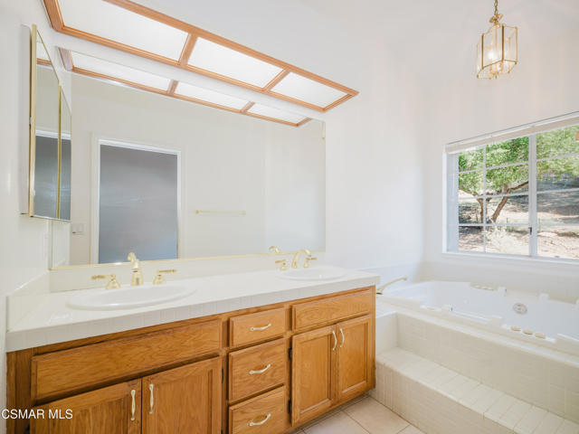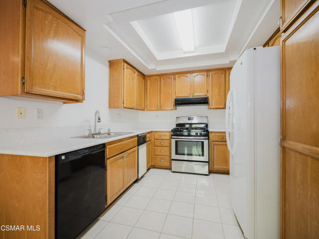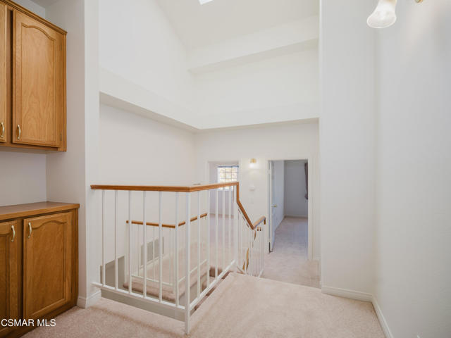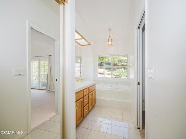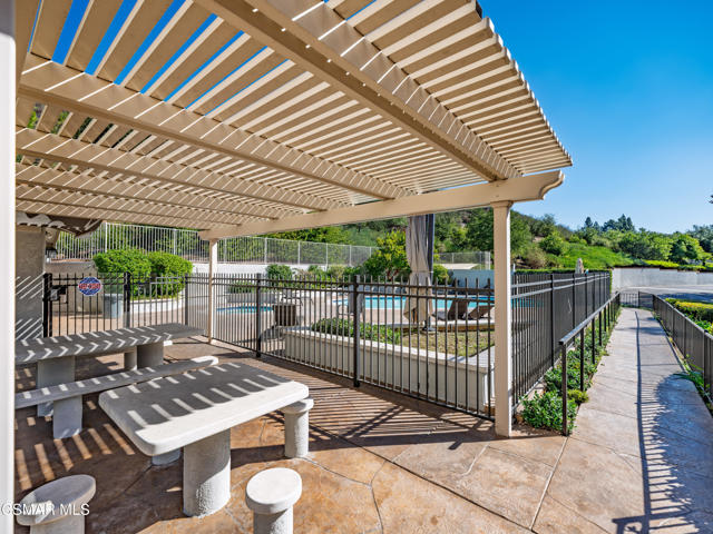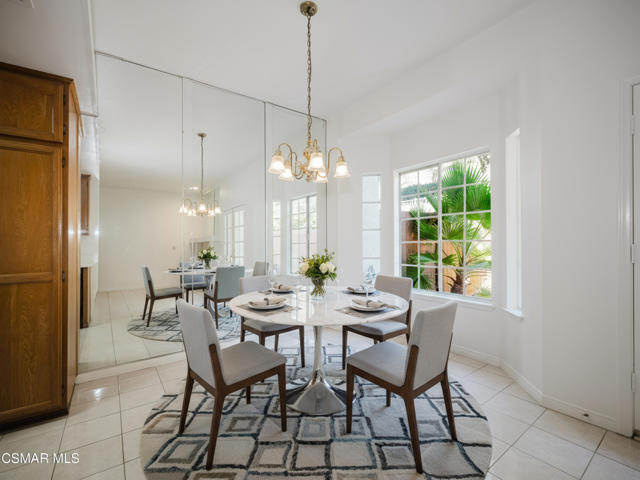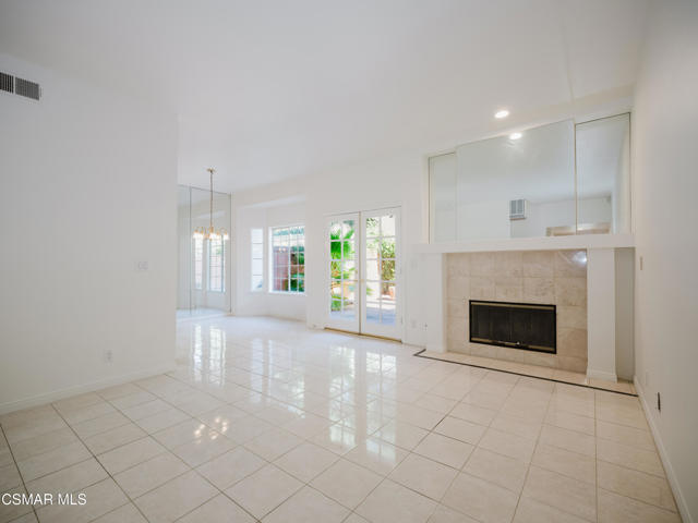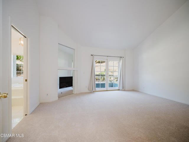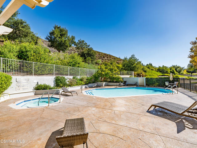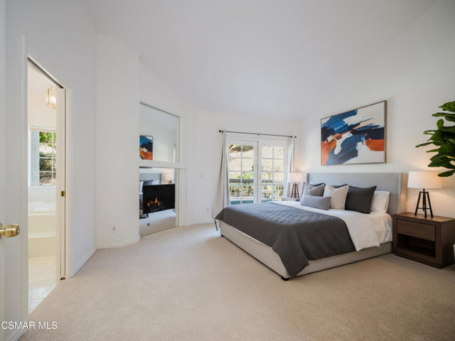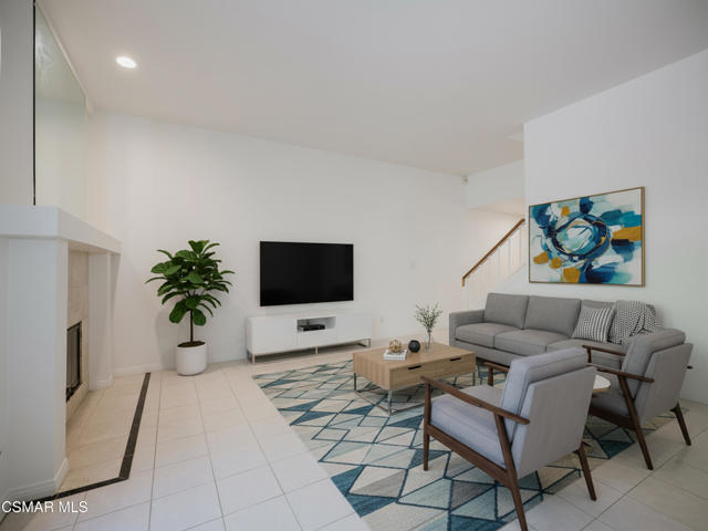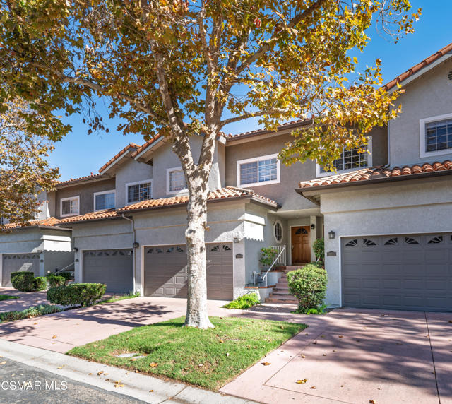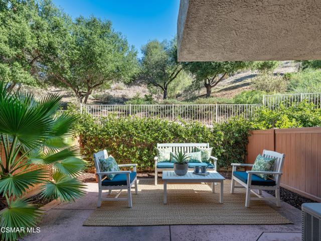 North Ranch Village Townhome, perfect location close to freeway, shopping, restaurants, etc. Open floor plan with high ceilings, brand new carpet, all new interior paint, new kitchen counter tops and sink. Large patio off the living room with vinyl fencing. Two fireplaces, one in living room the other in the primary which also has a jetted tub and french doors to balcony looking out to open space. Attached garage with direct access, Community pool, spa and clubhouse. Don't miss this one.