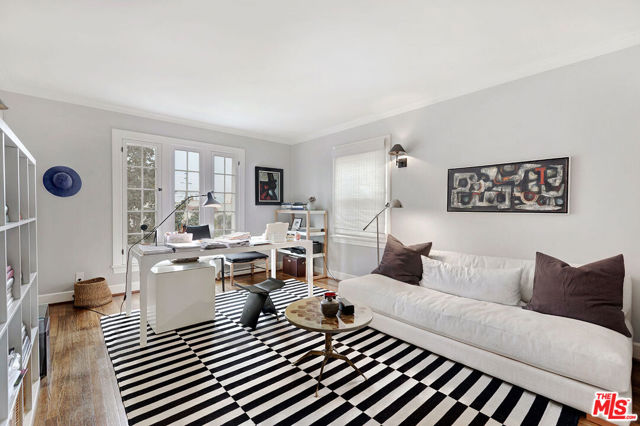 Sun-filled upper-level duplex available immediately in Hancock Park just blocks from Larchmont Village's, farmers market, Center for Yoga, Cookbook, shops, and restaurants such as Great White and La Bettola di Terroni. Sensational outdoor space for cocktail hour, dinner parties or coffee and the newspaper. Hardwood floors, handsome updated bathrooms and kitchen with separate laundry room. 2 large bedrooms and 2 baths. The primary suite is located at the rear, accesses the patio and boasts a large walk-in closet, bathroom with double sinks and plenty of storage. 2 off street and gated parking spaces - one covered and one uncovered. Very unique rental property with large landscaped backyard with roses and citrus trees PLUS two balconies - a large rear and smaller front. Hollywood close. Move in ready today!