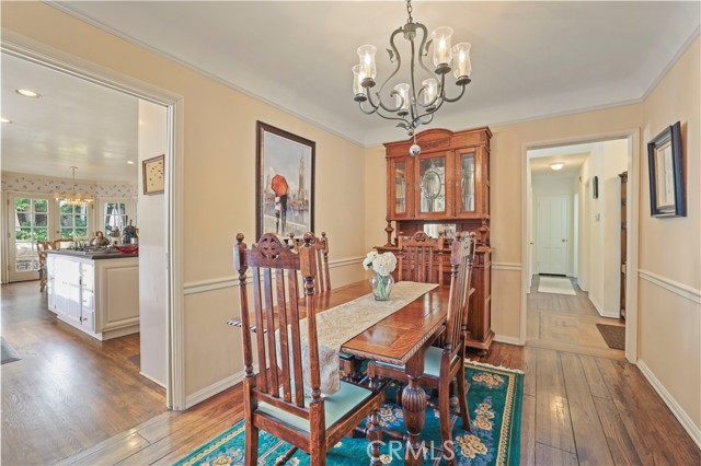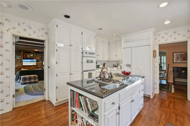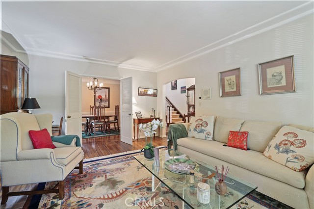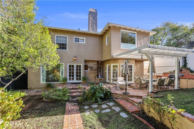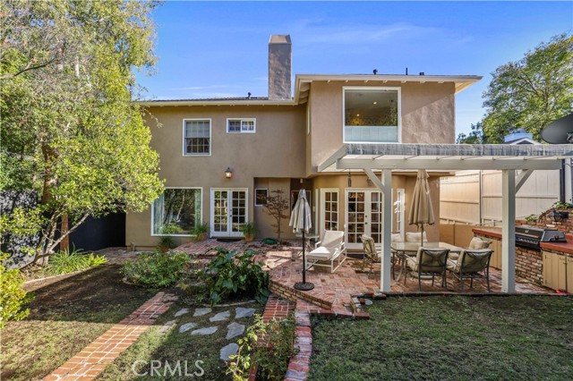 Set on one of Sherman Oaks most prestigious, tree lined streets, this exceptional five bedroom, three bath residence offers nearly 3,200 square feet of timeless elegance and comfort. Located south of Ventura Boulevard, the home enjoys a blend of privacy, charm, and walkable access to the neighborhood’s finest shops and restaurants. Thoughtfully designed, the floor plan features two versatile downstairs bedrooms, ideal for guests, an office, or multigenerational living. The formal living room, anchored by an inviting fireplace, flows seamlessly into a sophisticated dining room. Enjoy the spacious family room with its own fireplace provides a warm, relaxed atmosphere for everyday living. The family room overlooks the lush backyard. The kitchen, complete with a center island and informal dining room, balances classic style with everyday functionality. Upstairs, the large primary suite impresses with vaulted ceilings, two generous walk-in closets, and a sun-filled sitting area complete with a balcony that serves as a true retreat within the home.The backyard features a private patio with a pergola offering a serene setting for outdoor dining or lounging beneath mature trees. Additional highlights include a two-car garage, brand-new roof, and fresh exterior paint. Blending character, scale, and a coveted location, this residence embodies the best of Sherman Oaks living where timeless design meets modern convenience in one of the city’s most sought-after restaurants and shops.
