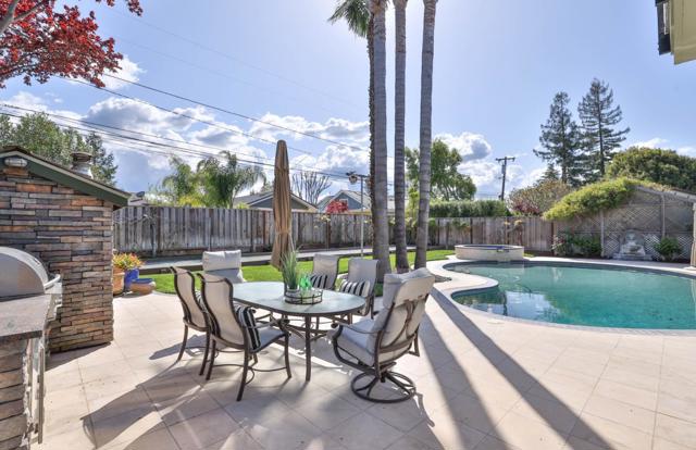 Welcome home to Dry Creek, one of Willow Glen's most desirable neighborhoods! This beautiful home offers a resort-style backyard, dual primary suites, and a chef's kitchen designed for everyday living and effortless entertaining. The kitchen features premium stainless-steel appliances, double ovens, two dishwashers, a gas range, prep sink, built-in refrigerator, and large island surrounded by refinished hardwood cabinetry. Vaulted ceilings, skylights, and hardwood floors fill the home with warmth and natural light. Two primary suites provide flexibility for multigenerational living or guests. Enjoy a temperature-controlled wine room, bonus room, Sonos audio, EV charger, and three fireplaces. Outside, your private retreat awaits with a solar-heated pool with LED lighting, cascading spa, bocce court, built-in BBQ, wood-fired pizza oven, and shaded cabana. Known for its tree-lined streets, historic character, and strong sense of community, Dry Creek neighborhood also offers easy access to Highways 280 and 17.