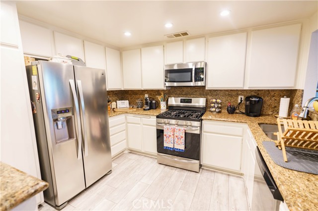 Welcome to Briar Oaks Gated Community, 10340 E. Briar Oaks Unit B is a spacious and quiet ground level unit in the back of the complex with plenty of privacy. This well maintained unit features a beautiful Kitchen with white cabinetry on granite countertops accompanied by a Breakfast Bar. All open to the Living room. Gorgeous laminate flooring throughout the living room, dining room and hallway. Attached Private Single Car Garage with convenient direct access to the unit. Plantation Shutters in the living room. Laundry closet is located in the hall, on your way to the Primary Bedroom Suite. The Primary Suite features a dual sink vanity as well as closets. The Briar Oaks Community HOA provides you with Pool and Spa access, Paid trash and cable TV, landscaping, One assigned parking spot in addition to the connected private single car garage. All this Centrally located to many specialty restaurants, shops, malls, Stanton Central Park, Amusement Parks, and only minutes to the 5, 91 & 22 freeways. This is the one you've been looking for! Don't miss out on this great opportunity!
