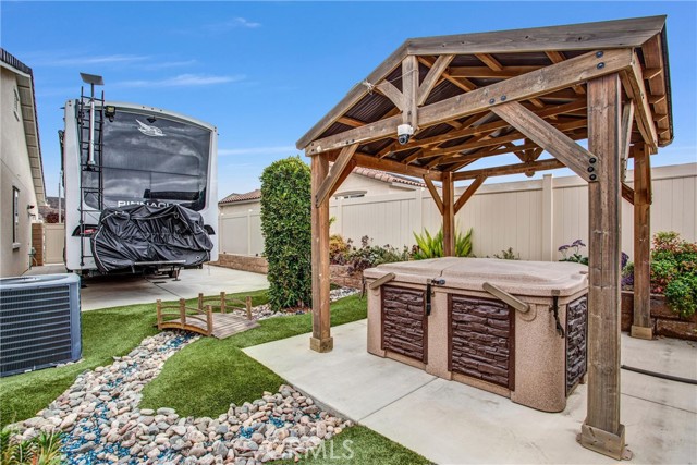 LOOK NO FURTHER… YOU’VE FOUND THE ONE!! This immaculate 2,293 sq ft SINGLE STORY 3 bdrm / 3 ba / 3 car garage home on a Cul-de-Sac street featuring impressive RV-PARKING (17x38) w/ FULL hook-ups (50Amp, water & sewer), is the one for you!! This lovely home features: a huge open floor plan with lots of natural light, an expansive Family Great Room w/ wood paneled accent wall, a large gourmet center island kitchen w/ granite counter tops, upgraded mosaic backsplash & custom color cabinets; a master bedroom retreat suite w/ huge wrap around walk-in closet; an oversized laundry room w/ a built-in mud sink plus additional storage. And when you need a little fresh air, your beautifully landscaped backyard retreat is ready for you day or night with a large covered patio, as well as, your own personal 2 person jacuzzi complete w/ it’s own gazebo! And if that’s not enough, additionally this property features: Paid off SOLAR (14 panels / 5.3 kilowatts), Built-in doggy door to the dog run on the side, Crown moldings thru-out, epoxy floored garage w/ plenty of storage, Central A/C & Heat w/ an additional whole house fan as well. Yes, this property has all you need, and did I mention it’s close to schools, parks, shopping & wine country?!?! THIS IS A MUST SEE!!