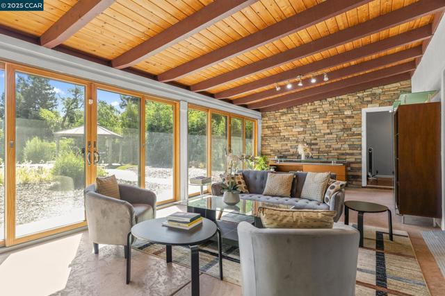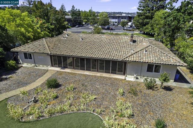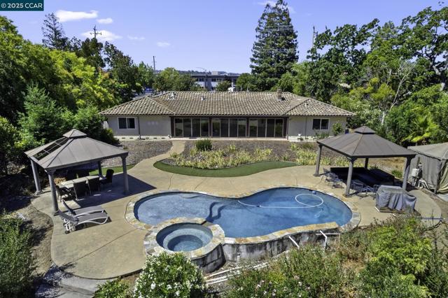 Discover the allure of this expansive single-story 4bd/2bth rancher with attached 1bd/1bth ADU situated steps away from the vibrant heart of downtown Broadway Plaza. Nestled on nearly three-quarters of an acre (0.73), this property presents an exceptional opportunity for significant expansion including an “additional” ADU or a potential subdividing lot subject to Walnut Creek's approval. The lot itself is a near-perfect rectangle, offering an ideal canvas for your vision. Be sure to review the drone photos for stunning overhead views. This residence is an entertainer and chef's dream, featuring a spacious cherrywood kitchen complete with elegant tile backsplash and a full suite of stainless steel appliances, including a double oven, chimney style hood. The home is bathed in natural light, thanks to the floor-to-ceiling wall to wall windows along the rear in the expansive bonus room. Primary bedroom on one end of the house, and three other bedrooms on the opposite side of home. The indoor laundry room is very spacious. Outside, there is a sparkling pool with water fountain, Baja Shelf and hot tub, spacious decks, two gazebos, grape vine field. AUD offers fully equipped kitchen, W/D, a full bath and split A/C and heater system. Located within the top rated Walnut Creek Schools.