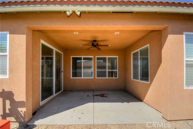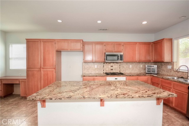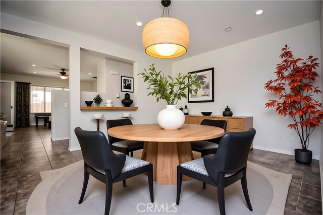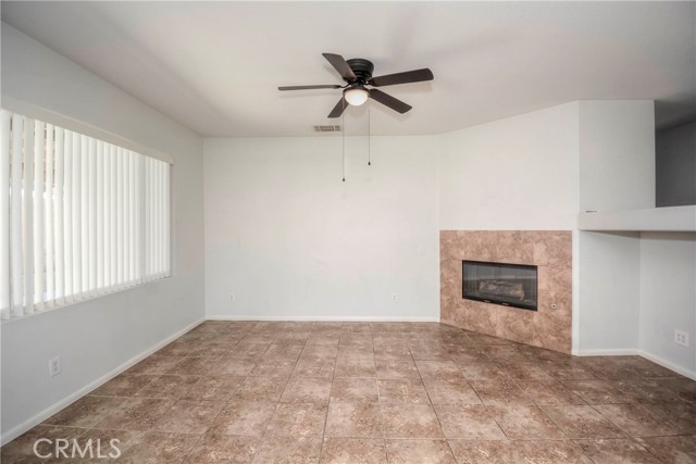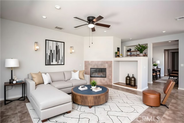 Discover this stunning SINGLE STORY home nestled in the sought-after Skyborne community of Desert Hot Springs. The residence features three bedrooms, two and a half bathrooms, and a two-car garage. The flex room is being used as a dining room and it can be also used as a living room or an office, while the expansive kitchen boasts elegant granite countertops, a large island with bar seating, ample cabinet space, and a built-in desk. The kitchen flows into the family room, complete with a cozy fireplace, ideal for family gatherings. Enjoy recessed ceiling lights, ceiling fans, high ceilings, premium tiles thru out the house. A French door leads from the kitchen to the backyard. The primary suite includes a spacious bedroom, walk-in closet, and a bathroom with dual sinks, a separate walk-in shower, and a bathtub. Two additional well-proportioned bedrooms are included. The covered patio offers additional space, perfect for outdoor entertainment. The laundry room's convenient location near the garage adds to the home's thoughtful layout. Drought resistant backyard with solid patio cover. Skyborne community amenities enhance the living experience with a community pool, BBQ areas/parks, a dog park, and private gates. Close proximity to Palm Springs, restaurants, shopping, casinos, and entertainment.