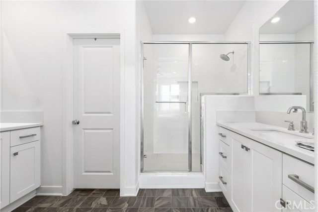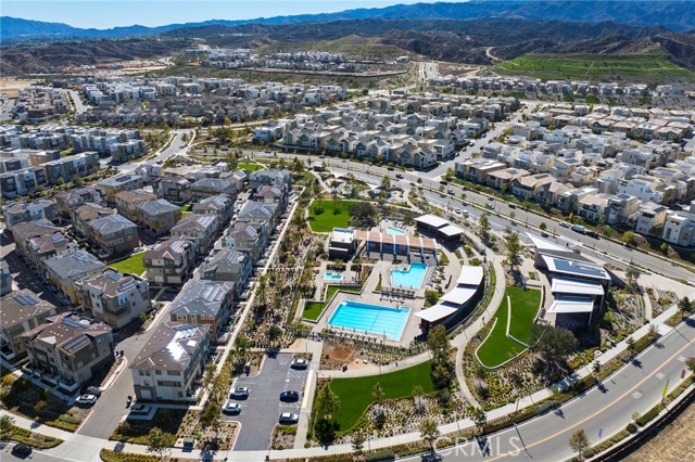 An amazing tri-level, stacked flat concept home Featuring a modern and functional layout with a spacious ground level office space perfect for working from home. The main level features an open concept design, showcasing luxury vinyl waterproof flooring, a bright family room with its own private balcony, LED lighting, a dining area, and a beautiful kitchen complete with sleek white cabinetry, stainless steel appliances, and quartz countertops. A Half bath is located on main level. Upstairs, you'll find two roomy bedrooms, each with its own full bathroom, along with a convenient laundry area. The 2-car garage is attached with direct access to unit and offers a tankless water heater. Includes front yard private patio area. Enjoy some of the BEST HOA amenities around, including resort-style pools, a kiddie pool, a community center, outdoor fire pit with plenty of seating, picnic areas, cooking stations, community gardens, dog stations, and scenic walking trails. Centrally located near award-winning schools, golf courses, shopping at Westfield Mall, Six Flags Magic Mountain, and with easy freeway access. Come for a visit. Stay for a lifetime. Welcome home!