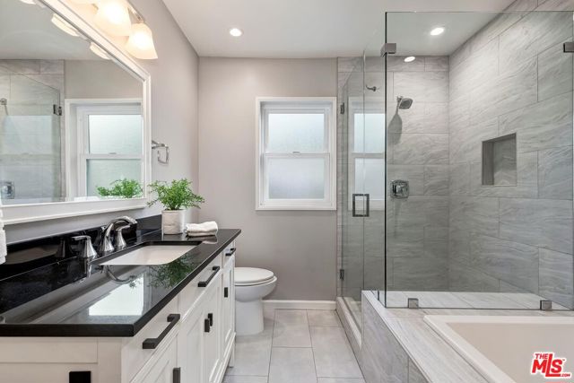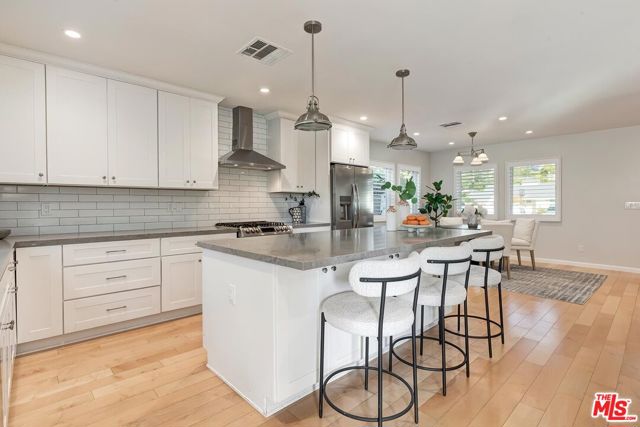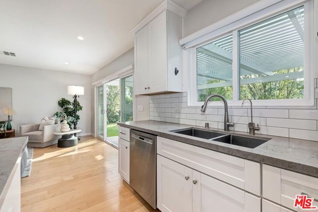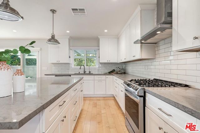 Gorgeous Mid-Century Gem near Culver City's Blanco Park! Completely renovated and expanded in 2017, this bright and stylish home blends timeless design with modern comfort. The open living room features gleaming hardwood floors, recessed lighting, plantation shutters, and sliding glass doors that open to a covered patio perfect for indoor-outdoor living. The gourmet kitchen impresses with white shaker cabinets, quartz countertops, a large center island, and stainless-steel appliances, all open to the dining area for easy entertaining. The spacious primary suite includes a luxurious bath with dual sinks, a stone-tiled shower, and a separate soaking tub. Thoughtfully updated from top to bottom with a new roof, HVAC, electrical panel, tankless water heater, windows, washer, and dryer all from the 2017 renovation this home still feels brand new. The large grassy backyard offers room to play, while the detached 1-car garage makes an ideal office or gym. Located on a quiet cul-de-sac near Blanco Park, surrounded by shops and restaurants, and close to both El Rincon and El Marino Elementary Schools just minutes from everything in downtown Culver City!