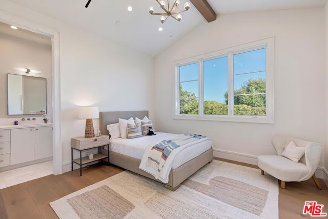 Brand new Hamptons-style traditional home located in the prestigious Upper Riviera, one of the Westside's most coveted addresses. Spanning approximately 7,850+/- sq. ft., this residence offers 6 bedrooms inclusive of a main floor guest suite with sitting room and kitchenette. The home is designed with the finest finishes, combining timeless elegance with modern conveniences. The entry leads to a floating staircase, and opens to a grand living room and formal dining room area. There is also an office/study with floor-to-ceiling walnut cabinetry. The gourmet kitchen features a full Subzero/Wolf suite of appliances, oversized island, butler's pantry, and a large walk-in pantry. The kitchen opens to a breakfast area and spacious family room with oak built-in cabinetry, and expansive La Cantina glass doors leading to the backyard. The home is finished with white oak floors throughout, a multiple-zone HVAC system, and full smart wiring adaptable to any owner's needs. There is a Lutron lighting system, security system with multiple cameras, and Waterworks fixtures throughout. The upper level has a primary bedroom with fireplace, balcony, and spa-like marble bathroom featuring dual vanities, makeup area, oversized dual shower with multiple sprayers, two separate water closets both with Toto Washlet toilets, and a spacious walk-in closet. Three additional en-suite bedrooms with walk-in closets complete this level. The lower level is designed for entertaining with a state-of-the-art theater, large great room with bar, wine room, gym, guest/maid's suite, and abundant storage. An elevator services all three floors. Mature landscaping ensures privacy while the salt-water pool, spa, and outdoor BBQ create a relaxing retreat. Additional amenities include a full three-car garage with two EV chargers. A rare offering in the Riviera, this special home blends traditional craftsmanship with contemporary luxury in one of Los Angeles' most exclusive neighborhoods.