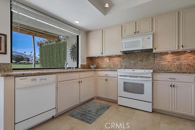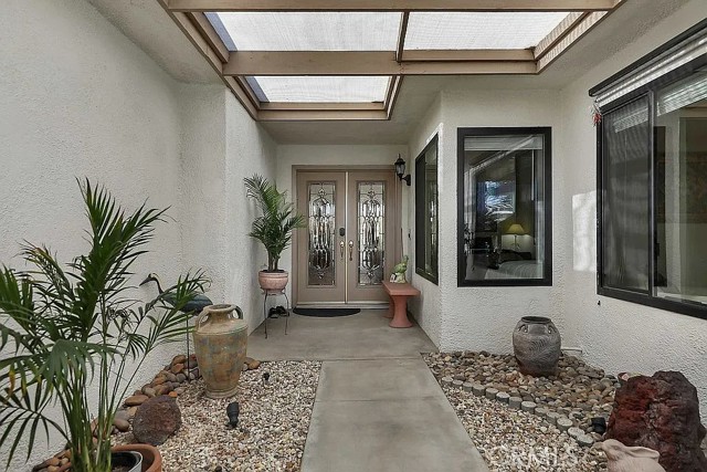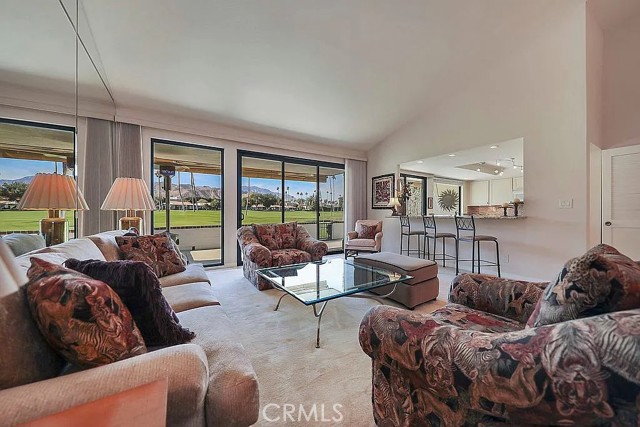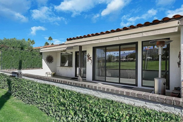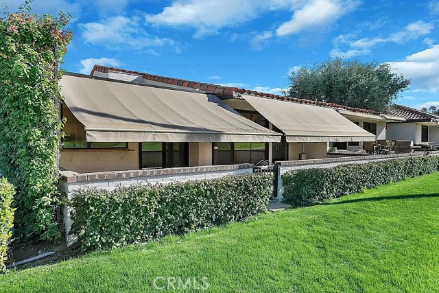 Views! Views! A spectacular 180-degree backdrop of the San Gorgonio, San Jacinto and Santa Rosa Mountain ranges, double fairways and a water feature! A sought-after location steps from the entrance of the Rancho Las Palmas Country Club, this home’s foyer welcomes you with a private courtyard and tranquil landscaping. The beveled glass doors and travertine floors in the entry invite you into a vaulted ceiling living space with these magnificent views. Floor-to-ceiling and clerestory windows amplify the bright natural light of the living room, perfect for desert entertaining. The kitchen offers travertine floors and granite countertops. Awnings shade the back patio while you enjoy the comfort of morning and evening views of the double fairway that a one time was the landing strip for private planes before the construction of the Marriott, now Omni, hotels. A converted atrium with skylights serves as a 3rd bedroom. New double paned windows and sliders throughout. Wonderful for full-time or resort living for those seeking a blend of comfort, luxury, and an active lifestyle. As a Rancho Las Palmas Country Club resident, you have access to a 27-hole golf course, 26 swimming pools and spas, a fitness facility, tennis courts, and more. Minutes from the Omni Resort, this home invites you to take a short walk to The River, a destination for movies, dining and evening entertainment. Rancho Mirage is central to Palm Springs, Palm Desert, the famed El Paseo shopping district, and easy access to golf courses, hiking, and top dining. Do not miss the opportunity to own this exceptional home that combines luxury living with golf course & mountain views.