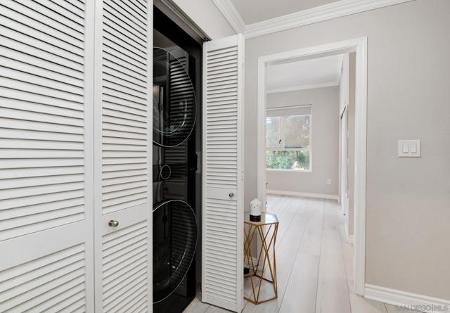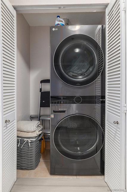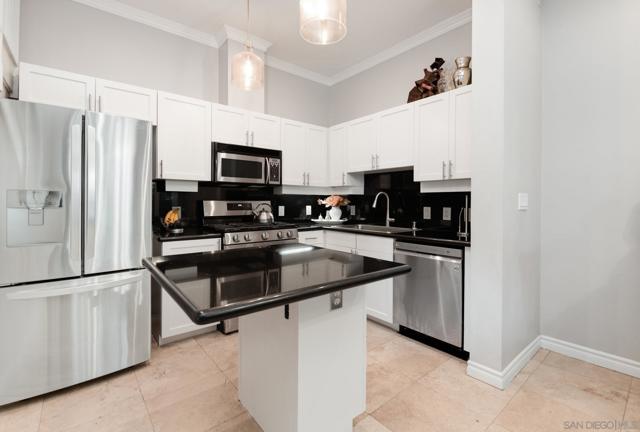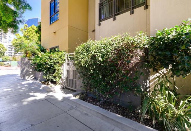Discover this truly rare corner townhome unit in the sought-after Treo community! This private and rarely available corner unit offers convenience, privacy, and charm. With only one shared neighbor and extra windows throughout, this unit lives like a detached residence. Enjoy the ease of private walk-up access through your own street-level gated patio — perfect for pet owners and guests! Inside, soaring ceilings welcome you into a thoughtfully designed open floorplan. The main level features a modern kitchen with updated cabinetry, new stainless-steel appliances, fresh paint, stylish light fixtures, and a spacious island that flows into a dedicated dining area and private patio. The living room is warm and inviting with a cozy gas fireplace, there's a convenient half bath and plus ample under-staircase storage. Upstairs, you'll find two generously sized bedrooms with ceiling fans and each has its own en-suite bathroom, plus an in-unit stacked washer/dryer. The home includes one assigned parking space and a private storage unit, with easy access to rent a second parking space if needed. Treo residents enjoy an array of amenities including a pool, spa, fitness center, clubhouse, BBQ areas, and lushly landscaped courtyards. The community is pet-friendly with low HOA dues and an unbeatable walkable location. Located in the Columbia District, you’re just moments from the Trolley, Santa Fe Train Station, Seaport Village, Waterfront Park, and just steps from the vibrant neighborhood of Little Italy.
