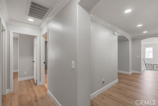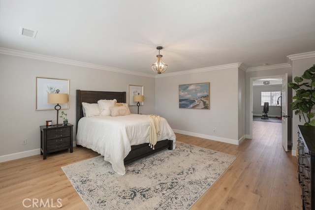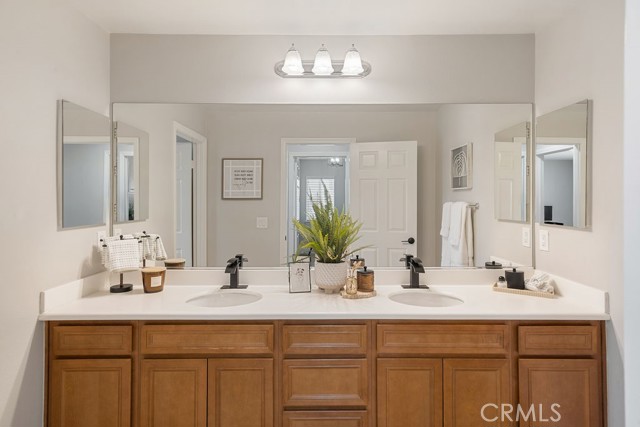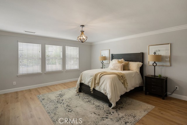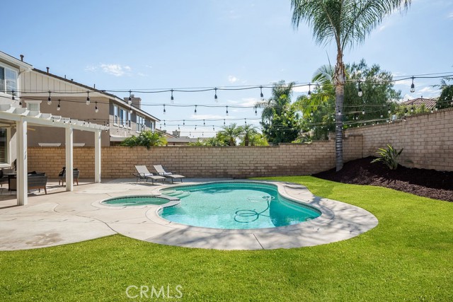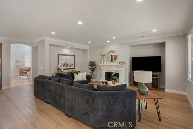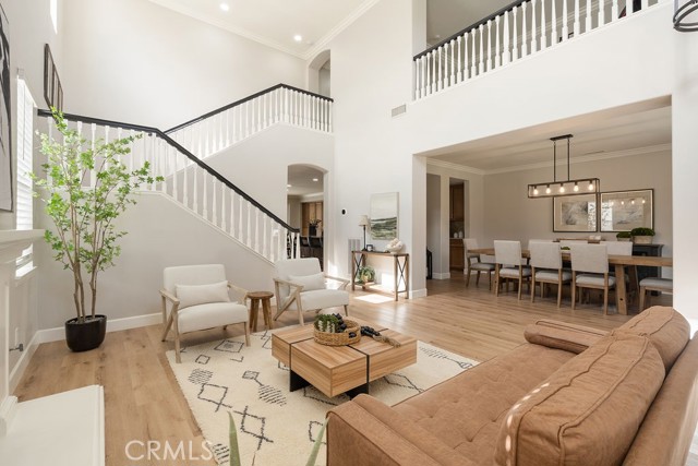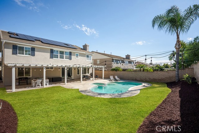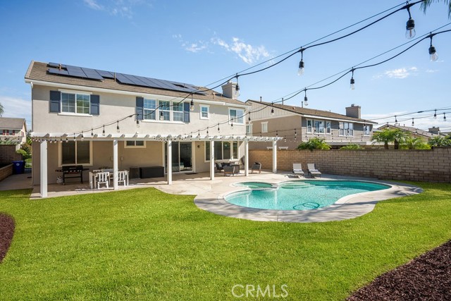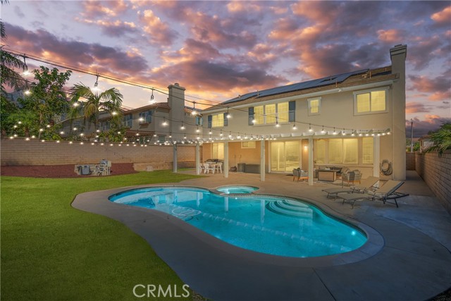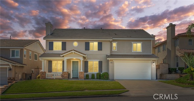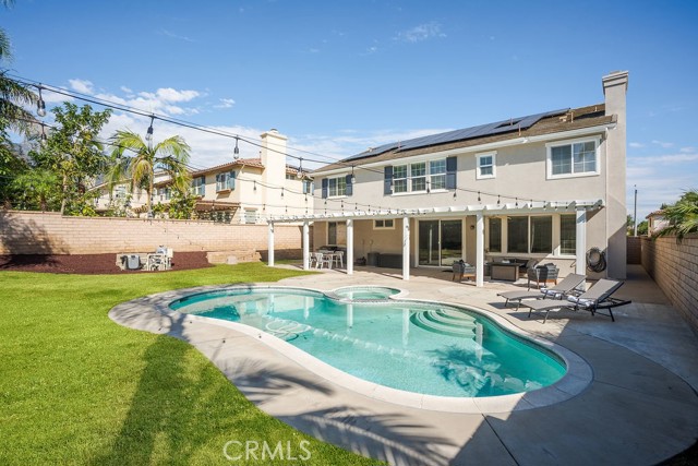This distinguished 5-bedroom, 3-bathroom residence is nestled on a quiet cul-de-sac in the prestigious community of Rancho Cucamonga. The home has been meticulously upgraded and offers the advantages of no Mello Roos and no HOA fees. Upon entry, the living room impresses with vaulted ceilings and a welcoming fireplace, seamlessly flowing into a formal dining area and a well-appointed kitchen with a large island, granite countertops, and ample storage. The adjoining family room, featuring an additional fireplace and built-in desk, enhances the open layout. Elegant crown molding and luxury vinyl flooring further elevate the home’s sophisticated aesthetic. The main floor hosts a bedroom and full bathroom, ideal for guests. The upper level includes a versatile loft and four additional bedrooms, including a spacious owner’s suite with an en-suite bathroom. The outdoor space is designed for relaxation and entertainment, featuring a pool, spa, and covered patio. A 4-car garage and a state-of-the-art solar system with a backup battery complete the property’s offerings.