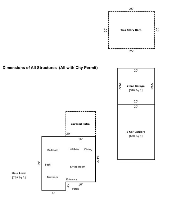 Seller will finance the loan to the buyer at 5.5% interest, no loan fees, four year loan term. 10% down payment. Four structures on the lot all with permits: (1) two bedroom house with a covered patio (2) two-car carport (3) two-car garage (4) two-story recreation building (used to be a barn). The lot size is 75' x 315' and the zoning is RA. Fencing on all four sides. The garage could be converted to an ADU. The barn could be converted to an ADU. Seller is seeking a short escrow with no contingencies. Property being sold 'as is' including the tenants - who said that they found a place to move to but need time to move their personal property. Quiet neighborhood. Sewers.