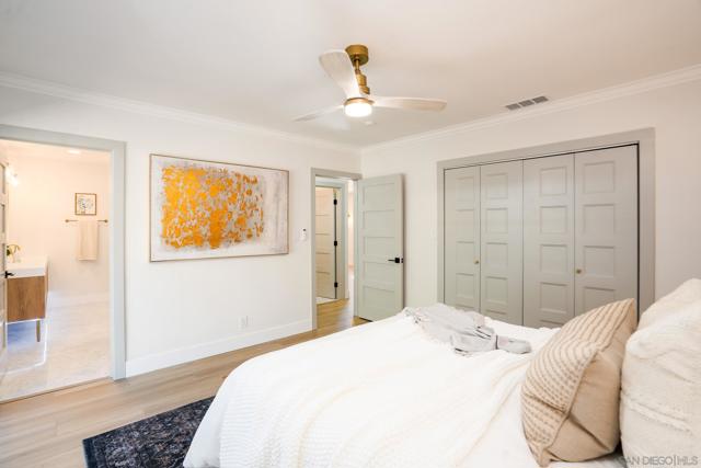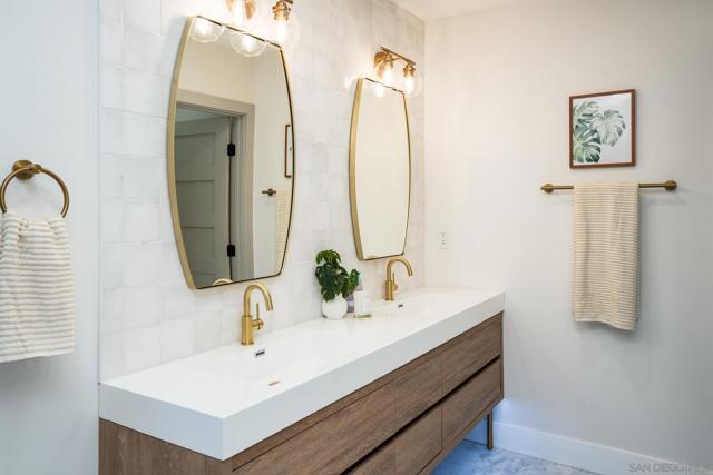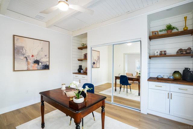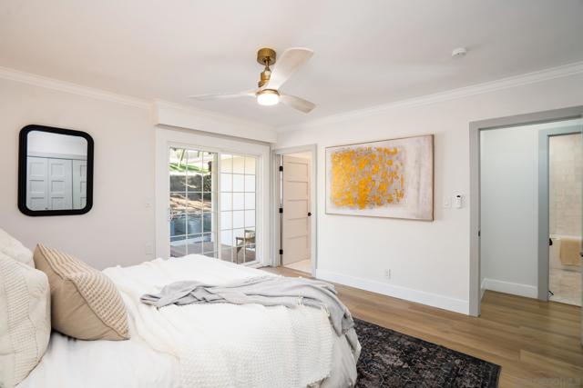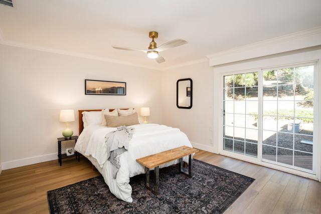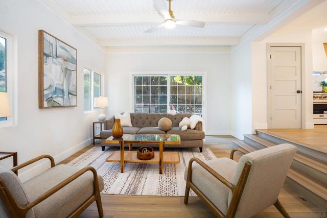 Welcome to your Poway retreat, where modern design meets everyday comfort. This beautifully renovated four bedroom, two bath home sits on a spacious half acre lot with endless possibilities. Whether you’re dreaming of an ADU, a garden, or simply more room to relax, this property gives you the space to create your ideal lifestyle. Nearly 2,000 square feet of open living has been thoughtfully reimagined with over $220,000 in upgrades. Wide plank flooring, designer lighting, and a cozy wood burning fireplace set a warm, modern tone. The kitchen is a showpiece, featuring a large waterfall island, quartz counters, slim shaker cabinets, brass accents, and a 36 inch gas range beneath a custom hood. A walk in pantry and wet bar with wine fridge make entertaining effortless. The private primary suite opens to the backyard and includes a spacious walk in closet and spa style bath with soaking tub and Zellige tile shower. Both bathrooms feature marble floors and brass fixtures for a refined finish. Outside, enjoy a sparkling pool, breezy upper deck, open lawn, and eleven raised garden beds surrounded by fruit trees including Meyer lemon, avocado, and mandarin. The large driveway and two sheds offer extra storage, and the fully fenced yard provides privacy with room to expand. Located across from Aubrey Park and one block from the weekend Farmers Market and Old Poway Village, this home blends modern design, outdoor living, and small-town charm—all in one perfect package.
