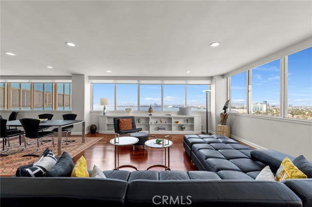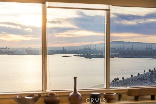 LOCATION, LOCATION, LOCATION! Welcome to this mid-century modern gem in the iconic The Galaxy Towers offering breathtaking panoramic views of the Pacific Ocean, coastline, Catalina Island and San Gabriel Mountains. With 30 windows filling the space with natural light, this fully renovated residence features elegant roller shades for privacy and light control. The stylish kitchen and remodeled bathrooms boast quality cabinetry and marble tile flooring, while the cherry wood flooring throughout the unit adds sophistication. An in-unit washer and dryer provide convenience, and the HVAC system ensures year-round comfort. Ideally located near Bluff Park, residents enjoy easy access to outdoor activities, the oceanfront bike path, and the vibrant shopping and dining destinations of 2nd Street, Shoreline Village, and The Pike. Own a piece of Long Beach history while experiencing the finest in coastal luxury living! Good morning. Well-maintained community with an active Homeowners Association dedicated to enhancing the building. Recent upgrades include a new roof with a 30-year warranty and improvements to safety standards.