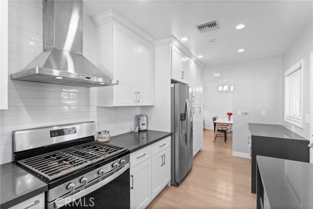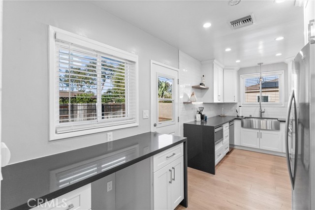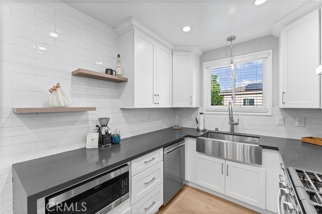 Welcome to 601 W. Southgate Avenue! This beautifully remodeled turnkey home is situated in one of Fullerton’s most sought-after neighborhoods. This charming single-story residence offers 3 bedrooms, 1 bathroom, and 1,094 square feet of thoughtfully designed living space on a 6,383 square foot lot. From the moment you arrive, the inviting front porch and freshly updated exterior create exceptional curb appeal and a warm first impression. Step inside to find NEW neutral toned interior paint and luxury vinyl plank flooring that flow seamlessly throughout, creating a cohesive, modern aesthetic. The fully remodeled kitchen is the heart of the home, featuring white shaker cabinetry, quartz countertops, and stainless steel appliances including a gas range, built-in microwave, dishwasher, and refrigerator. A large stainless steel farmhouse sink and elegant subway tile backsplash complete this bright and stylish culinary space. The updated bathroom showcases a brand-new gray vanity with quartz countertop, a linen storage closet, and modern tile flooring, blending functionality with contemporary design. The living room offers large windows that fill the space with natural light, a gas fireplace with mantle, and a seamless flow to the dining area—ideal for both everyday living and entertaining. The bedrooms are generously sized, each offering ample closet space and comfort. Additional highlights include central air conditioning and heating, dual-paned windows, recessed lighting, NEW light fixtures throughout, and a two-car detached garage with plenty of storage potential. The expansive backyard provides endless possibilities for outdoor enjoyment—perfect for relaxing, hosting gatherings, or creating your dream outdoor retreat. With plenty of room for an ADU, pool/spa, or home expansion, this property offers outstanding flexibility and value. Conveniently located near shopping, dining, and entertainment, this home also offers quick freeway access to the 5, 91, and 57, ensuring an easy commute. Situated within the highly regarded Fullerton Joint Union High School District, this residence offers the perfect blend of comfort, convenience, and quality living. Move-in ready and tastefully upgraded, 601 W. Southgate Avenue perfectly combines classic Fullerton charm with today’s modern finishes — an exceptional opportunity to call one of the city’s most desirable neighborhoods home. Don't miss your opportunity to make this your home!