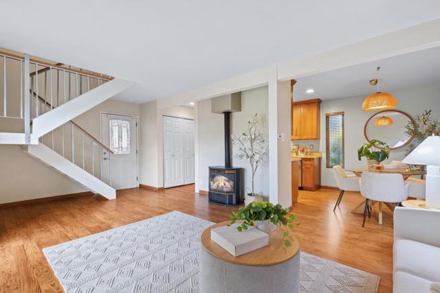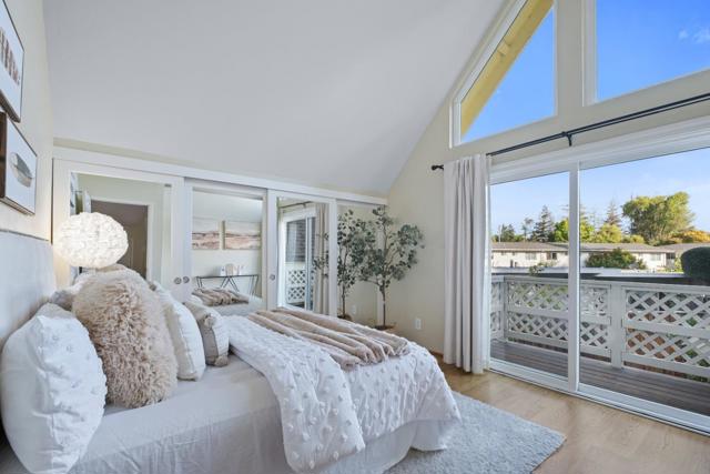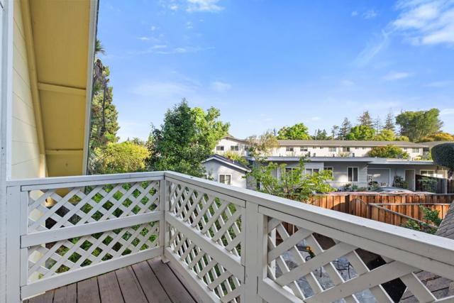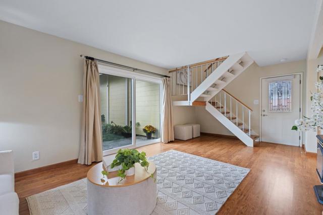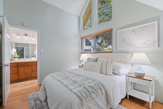 *Inside the community's quiet location, discover a charming chateau-style home with soaring ceilings & a sunlit private backyard oasis filled with fruit trees & lush greenery. Bathed in natural light from tall, elegant windows, the interior feels bright & uplifting, enhancing its high ceilings & airy flow. With minimal shared walls, only the stair wall adjoining the neighboring dining wall. *Upstairs, both bedrooms boast vaulted ceilings that create an airy, light-filled atmosphere. One bedroom opens to a tranquil patio overlooking the beautifully landscaped backyard. The home also includes an in-unit washer & dryer, 2 assigned parking spaces (No. 2524), & a private storage unit. *Outdoors, enjoy a private fenced yard with lush Chewings Fescue grass, tangerine, lemon, & pomegranate trees, along with two cherry-flowering trees & a pear-flowering tree. A stone patio invites alfresco dining, while additional garden space offers room to plant flowers, vegetables, or even more fruit trees. *The community's mature redwoods & heritage trees offer a tranquil, park-like feel like walking through the woods yet only 22 units make it a close-knit. Conveniently near Highway 101/85, shops, dining, & vet clinic.*Top-rated schools: Crittenden Middle School (8/10) & Los Altos High School (10/10).