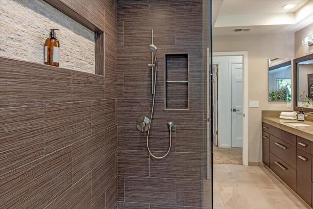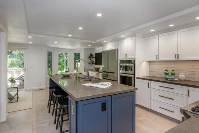 HUGE PRICE ENHANCEMENT! Gorgeous end unit townhome in the prestigious Villas of Almaden. Enjoy the bucolic surroundings of rolling hills & glorious oak trees along w/ exclusive access to two pools, spas, tennis courts, & a clubhouse w/ billiards, ping pong, racquetball & more. Extensively remodeled over time, the modern European aesthetic of the kitchen and bathrooms will surely delight. The chef's kitchen, remodeled in 2022, includes a Thermador 36" 6 burner gas range w/downdraft, Bosch dishwasher, Fieldstone cabinets with a "magic corner" storage system, quartz counters and a Bosch Cafe Platinum Glass Smart 4-door refrigerator. The huge owners suite is a true sanctuary with vaulted ceiling and an abundance of natural light through the large windows, a fireplace, a walk in closet done by California Closets, and a spa inspired bathroom w/ frameless shower, quartz double vanity, Hans Grohe faucets, programmable towel warmer and a freestanding Aria soaking tub. Other amenities include: a bedroom/ office and full bathroom on the main floor, Milgard Tuscany windows and sliders, heated porcelain floors in the kitchen, dining and downstairs hallway, a garage w/epoxy flooring, California Closet cabinets all around & attic storage. Easy shopping and commute location