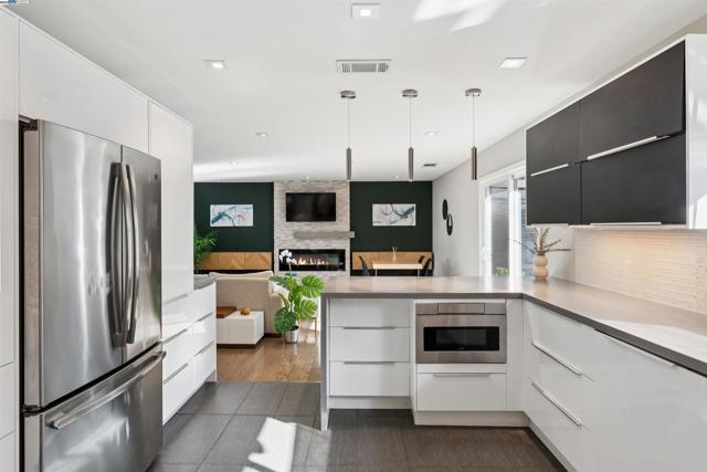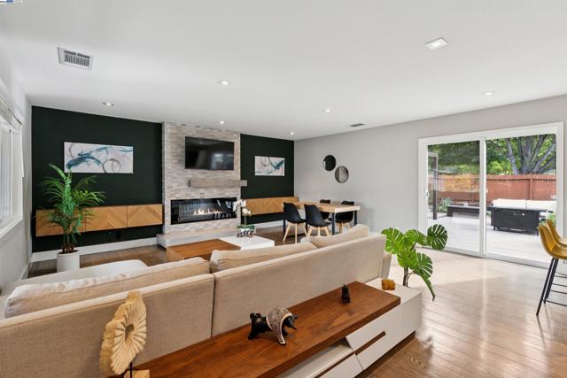 Welcome to modern living at its finest in this beautifully updated three-bedroom home, where style meets everyday comfort. The thoughtfully designed kitchen showcases roll-out cabinets, soft-close drawers, a “hidden” Bosch dishwasher, and a professional Viking gas range—perfect for both daily cooking and entertaining. The living room offers a cozy electric fireplace accented by a handcrafted concrete mantel and custom built-ins, creating a warm and inviting atmosphere.Both bathrooms evoke a spa-like retreat with elegant designer finishes and a soaking tub. Throughout the home, rich hardwood floors, LED lighting, and advanced smart home technology blend convenience with sophistication—including a smart lock that allows you to control entry, along with lighting, temperature, and sprinklers—all from your phone.Step outside to an expansive backyard featuring a generous deck, drought-tolerant landscaping, raised garden beds, and a storage shed. With an attached two-car garage and a prime location in Concord’s sought-after Diablo Estates neighborhood, this move-in-ready home perfectly balances comfort, technology, and timeless design.