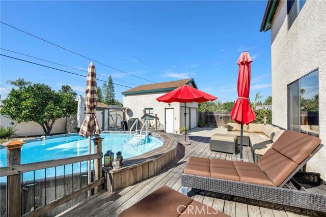 What an incredible floorplan! This wonderful detached home boasts: 4 bedrooms + Pool table room, 3 Baths and approx. 2,304 square feet. The home is well maintained throughout. First floor: 3 bedrooms. 2 bathrooms. Living room. Terrific kitchen. Pool table room which also has space for your in-home office. A separate room that can be used as a dining room or family room. Laundry closet. Second floor: HUGE primary suite with soaring ceiling and large private bath. Enjoy the pool that is surrounded by a deck/sitting area. Other features: Central A/C, Ceiling fans, Built-ins and a tankless water heater. Very long gated driveway that can fit multiple cars. Separate shed in the backyard. 2 car garage with ample storage space on the second level. Also included: Refrigerator, dryer, washer, water softener, pool supplies, pool table, Termite Clearance and Home Warranty. A home with this many features does not come around often; Come take a look today!