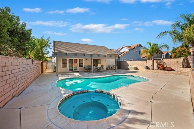 Welcome to Orangecrest! This Beautiful SINGLE STORY 3 bedroom, 2 Bath 1557sf POOL Home is the perfect find! Ideally located between Top Rated Elementary, Middle and High Schools in the Award Winning RUSD. Close Freeway Access and Walking distance to Schools and Orange Terrace Park with a Community Center, Year round Sports fields, Jogging path and Library. Entering the Home you will be greeted by tons of Natural Light and an open Concept Living Room with a cozy Fireplace and Tiled Dining Room. Continue through to the Upgraded Kitchen with ALL Included Stainless Steel Appliances, XL sink and an attached Kitchen Island saving a seat for many and open to the Family Room for everyone to be included. Down the hall you will find a Full Restroom with Tub/shower Combo, Laundry Room with INCLUDED Washer and Dryer, Hallway Cabinet nook for Storage, 2 matching Bedrooms with Ceiling Fans and a Primary Suite with a BIG Walk In Closet! Primary Restroom has a Soaking tub, Private toilet room and a long Mirrored Dual sink Vanity. A huge plus is the Primary bath exit to pool area for convenient Bathroom trips from the pool and Jacuzzi. This Backyard will set the stage for many memorable moments with a Bogner Built Sparkling Pool & Jacuzzi, a Huge Patio Cover and endless Concreted Pool decking surrounded by block wall for Privacy of all of the fun to be made. Don't miss the 2 Custom built Storage sheds along the side of the house. With NEW Exterior Paint, New front lawn and sprinkler valves, Newer AC & Furnace, Rebuilt Pentair Pool Equipment, Upgraded Kitchen, NO HOA, & LOW TAX you will not want to let this Orangecrest Gem pass you by! Schedule a Private showing today!