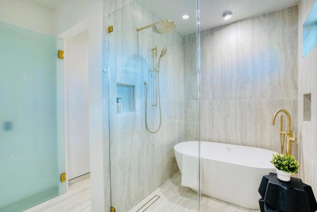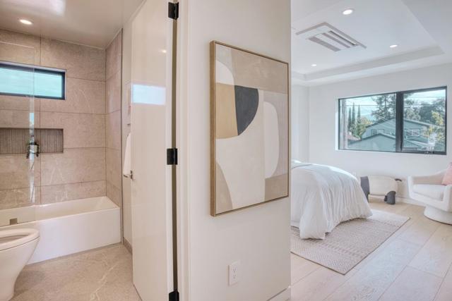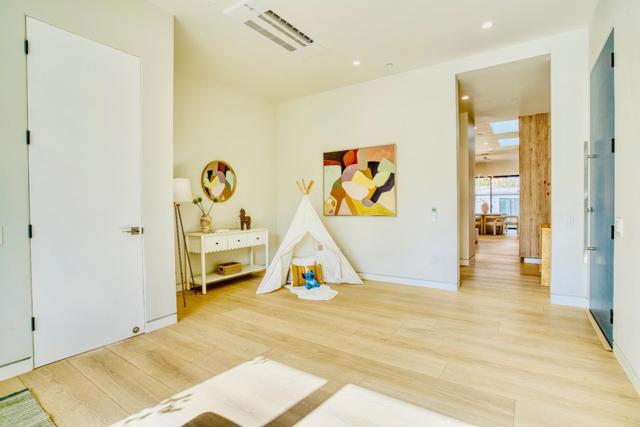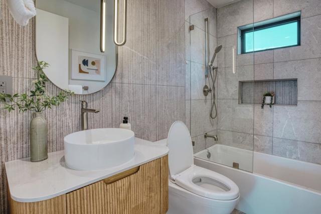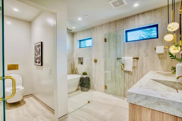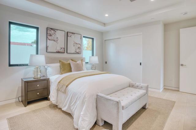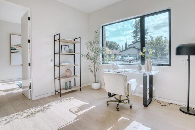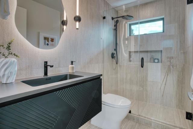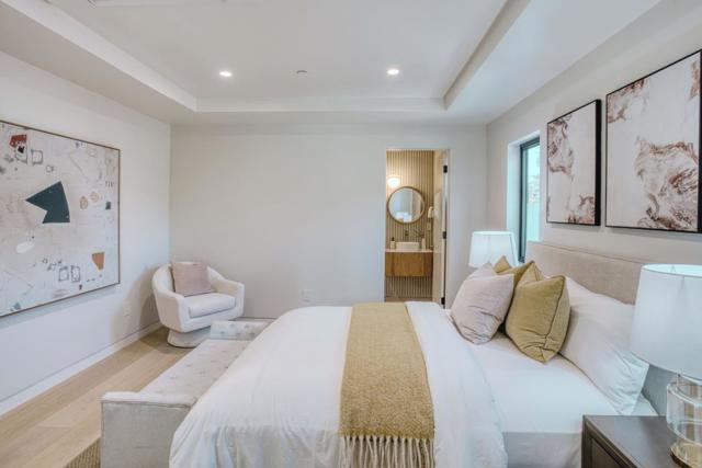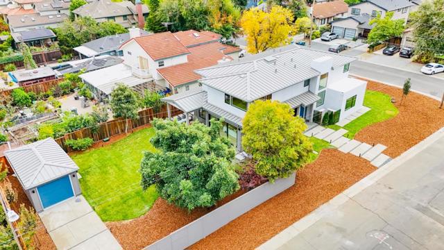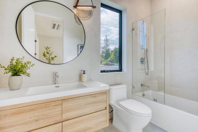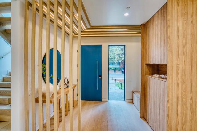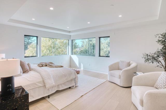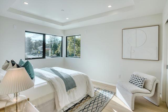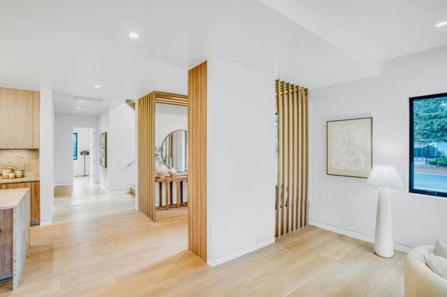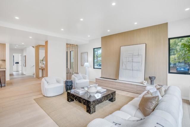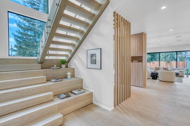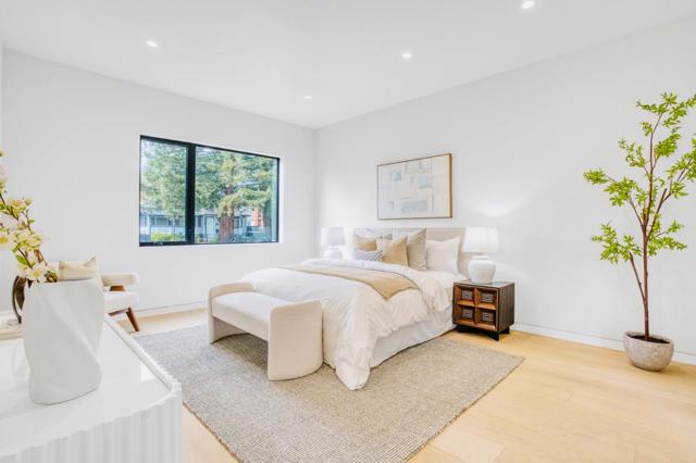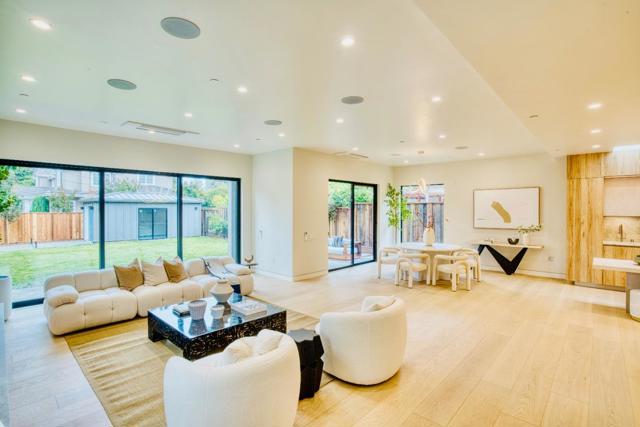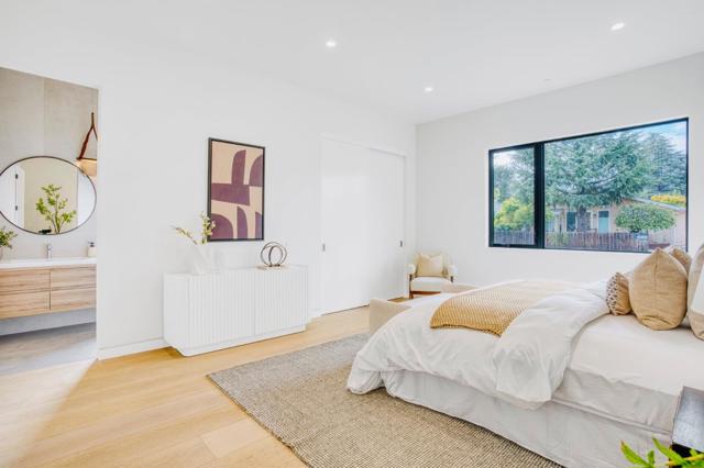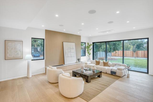 A striking new construction offering modern design and timeless livability in one of Palo Alto's most desirable neighborhoods, Barron Park. This newly completed residence spans approximately 3770 sq ft of refined living space on an 8,340 sq ft lot, featuring 5 bedrooms, 5.5 baths, and a dedicated office, along with a 230 sq ft detached garage and an attached ADU ideal for guests or multigenerational living. Light-filled interiors reveal European white-oak floors, skylights, and oversized sliding glass doors that open to a tranquil backyard oasis. The chef's kitchen showcases Arrital Italian cabinetry, premium Miele appliances, and a waterfall stone island with a cantilevered dining extension elegant centerpiece for gatherings and entertaining. The primary suite offers a serene retreat with a tray ceiling, corner window bay, and a spa-inspired bath featuring a freestanding soaking tub, curbless glass shower, and dual stone vanities. Energy-efficient systems, designer lighting, and a thoughtfully integrated ADU enhance comfort and versatility. Located near Stanford University, California Avenues shops and cafés, and Bol Parks scenic trails, this home also enjoys access to top-rated Palo Alto schools, including Barron Park Elementary, Fletcher Middle, and Gunn High.