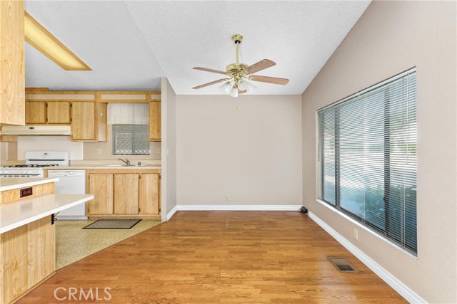 Beautiful Home in Highland Springs Country Club. This beautiful home features a bright, open layout filled with natural light, located in the resort-style 55+ community. Enjoy stunning views of the nearby hills and snow-capped mountains. The home includes a two-car enclosed carport with an automatic garage door. The low $230 month HOA fee includes unlimited free golf for residents and access to many wonderful amenities. Inside, this 2-bedroom, 2-bath home offers a cozy fireplace and a spacious living room—perfect for relaxing or entertaining guests. The primary bedroom opens directly to the patio through sliding glass doors. The backyard features lush green grass, shade trees, and mature apple, fig, and apricot trees, along with plenty of space to BBQ and entertain on warm summer evenings. Both the front and back yards are ideal for enjoying the outdoors. This is a manufactured home on a permanent foundation, and you own the land. Community amenities include pickleball and tennis courts, a heated pool and enclosed spa, fitness center, fishing lake, and a large clubhouse offering regular social events and activities. Located directly across from the blooming lavender fields, this home offers a rare opportunity to live in one of the Inland Empire’s most sought-after 55+ communities. Whether you’re an avid golfer or simply seeking an active, social lifestyle in a beautiful and peaceful community, this home is for you.