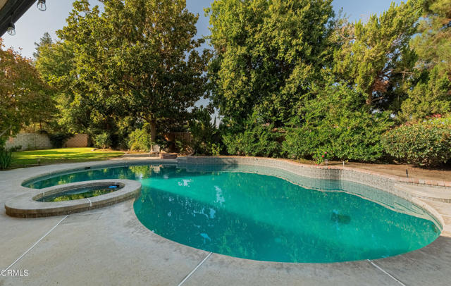 Welcome to this beautifully upgraded home located on a quiet cul-de-sac in the desirable Haggin Oaks neighborhood. This classic residence features owned solar with 30 panels, a battery backup, and NEM 2.0 for exceptional energy efficiency. Inside, enjoy lovely LVP flooring throughout most of the home and new carpet in the bedrooms. The open floorplan includes a spacious great room with vaulted ceilings and a cozy fireplace, along with formal living and dining rooms and a study with built-in bookshelves and another vaulted ceiling. The chef's kitchen boasts white cabinets, granite counters, a subway tile backsplash, and a casual dining area. The primary suite offers a fireplace, built-in cabinets and bookshelves, a walk-in closet, dual vanities, and a walk-in shower. Outside, the backyard is an entertainer's dream with a covered patio, sparkling pool and spa, gas fireplace, and firepitperfect for relaxing or hosting gatherings.