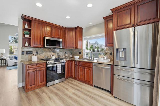Beautifully upgraded corner lot home with drought resistant plants, great curb appeal! Vaulted ceiling, abundant windows to flood with natural lights. New waterproof durable fiber wood flooring throughout. Completely updated bathrooms. Walk in shower. Central heating and A/C to enjoy your home all year round. Two alternating reusable air filter for the HVAC system. Osmosis water filter in kitchen. Mirror closet doors & large mirrors in dining give spacious feeling. Gas fireplace with option for wood burning. Schlage locks. Single key to access house, both sheds, gates. Alarm and camera system. Wall fence for highest privacy. Large low maintenance backyard to enjoy the outdoors in peace or entertain special guests. Great for BBQ. Super secure Medco lock mailbox. Custom decorative security gates. Double swing side gate to fit mini-RV trailer in the side yard, ready sewer hookup. Discreet pet relieve area. Conveniently located near variety of shops, Costco, Ranch 99, H-Mart, Sprouts, great restaurants from casual eating to fine dining, gourmet coffee & tea. Minutes to the post office, Great Mall, the Flea Market, VTA, BART, SJ Municipal Golf Course, SJ Int'l airport. Walk to Townsend Park with workout stations, tennis courts, children's playgrounds.