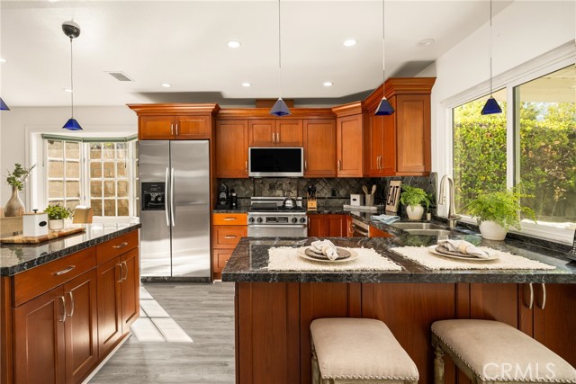 WOW! Thought you couldn’t buy such a desirable home in Yorba Linda for this price? Think again! If you’ve been dreaming of a single-level home with timeless charm, fresh updates, and that relaxed Yorba Linda lifestyle… this is the one you’ve been waiting for! Nestled in a quiet, established neighborhood where pride of ownership shines, this beautifully refreshed residence offers an open comfortable layout with plenty of natural light, a modern chef’s kitchen and a large private backyard perfect for relaxing or entertaining. It’s the kind of home that just feels right the moment you walk in. With new flooring, fresh interior paint, and stylish updates throughout, every space feels bright, modern, and move-in ready. Step into a welcoming living room where large picture windows fill the space with sunlight. The family room, with its whitewashed brick fireplace, vaulted ceilings, and French door to the backyard, creates the ideal space for relaxed living. Just beyond, the kitchen and dining area offer the perfect gathering space, featuring rich cherry cabinetry, generous granite counter space, high-end stainless appliances and a welcoming layout that makes cooking and entertaining effortless. Step outside to a peaceful backyard where you can unwind, entertain, or watch the kids play. With a generous covered patio, lush lawn, mature trees, and even a paved sports court that optimizes this 6,875 SqFt parcel, it’s the ideal setting for dining al fresco or simply enjoying the California sunshine. Overlooking the backyard, the primary suite is a spacious, relaxing retreat with a remodeled en-suite bath featuring custom tilework and a large walk-in shower. Two generous secondary bedrooms share an updated hall bath with sleek new vanity, modern fixtures, and glass-enclosed tub/shower combo, providing comfortable space for everyone. Located just minutes from Yorba Regional Park, equestrian trails, golf courses, and the vibrant Town Center for shopping, dining and entertainment, this home is served by award-winning Fairmont Elementary, Bernardo Yorba Middle, and Esperanza High. Combining single-level ease, thoughtful upgrades, and a generous backyard, this home delivers the best of Yorba Linda living, at a price that’s hard to find. Schedule your private showing before it’s gone!