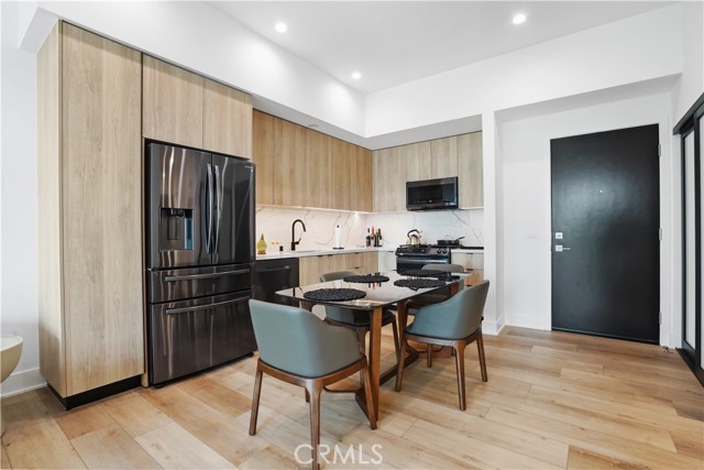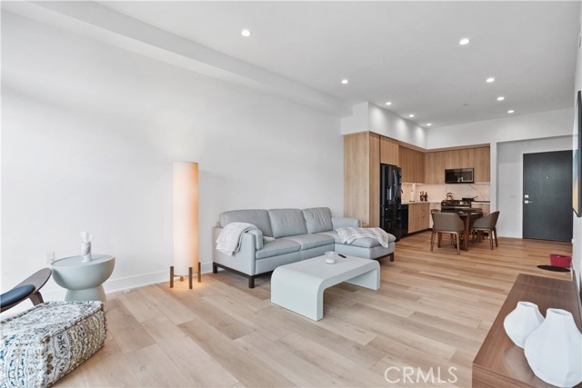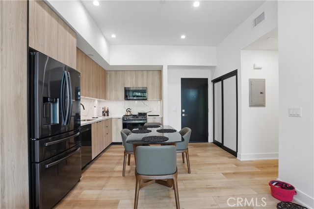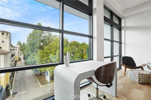 Built in 2022 this front facing modern chic design fairly new 1 Bedroom/1 Bath top floor unit with No common walls and Treetop Views is located in the heart of Pasadena's historic playhouse district, adjacent to the City's convention center. Only 42 exquisite residences, a common lounge/work area overlooking a lush courtyard are designed with a focus on sustainability. Oak color floors and European cabinets, Samsung appliances, Double sink in Bathroom, Tub and Glass shower Enclosure, Recessed lights, Central Heat and AC and indoor laundry area. 1 Parking space in secure underground Garage and storage space.