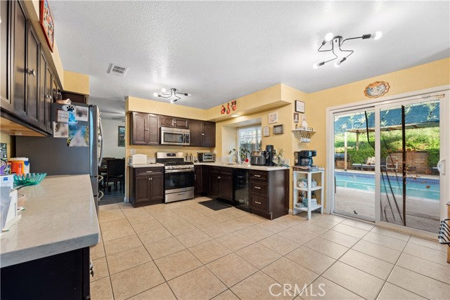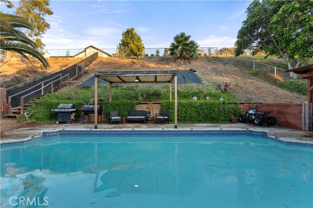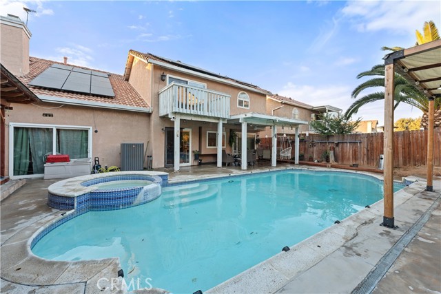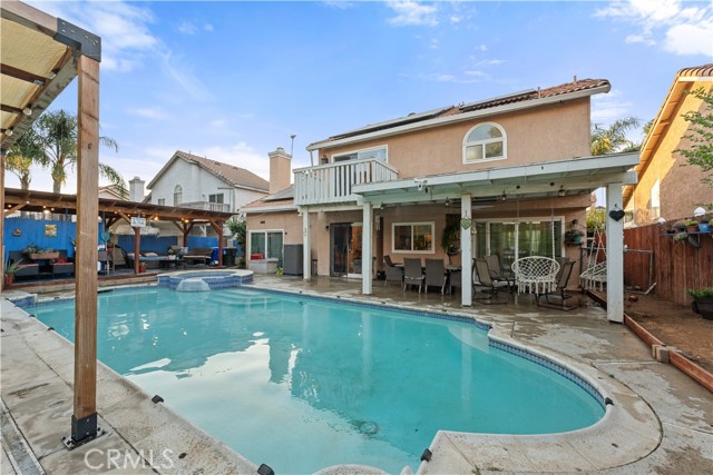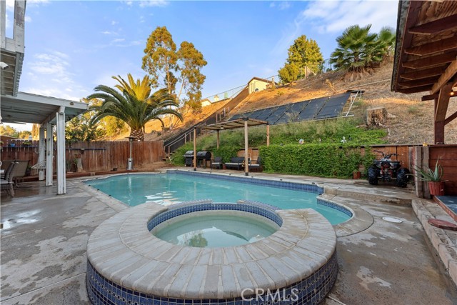 POOL HOME!!! *** Welcome to this beautiful two-story, 5-bedroom, 2.5-bath home situated on a spacious 8,712 sq ft lot in one of Jurupa Valley's most sought-after neighborhoods. Offering 2270 sq ft of living space, this property blends comfort, excitement, and curb appeal. Step into this bright and inviting home, where soaring ceilings and abundant natural light create an airy, open feel from the moment you walk in. As you enter the kitchen you will notice that it's well-equipped with granite counter tops, stainless steel sink and stainless-steel appliances, a wine fridge and lots of cabinet space with a beautiful view of the sparkling pool and spa. The home offers a convenient laundry room, a half bath and a full bedroom on the the main floor. The spacious living area with modern tile flooring, anchored by a charming brick fireplace for relaxing and enjoying those special moments. As you go up the stairs, the bedrooms provide privacy and relaxation. Other notable features include the NEW AC, NEW dual pane windows, New pump for pool, NEW water heater, and best of all 25 paid off solar panels providing you with free electricity throughout the year. Conveniently located in proximity to freeways, schools, parks, shopping, and the list goes on. This home is ideal for entertaining and everyday life.