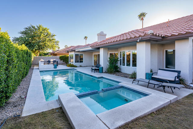 Resort-Style Living in Whitehawk - Fully Furnished Designer Pool Home Located in the sought-after Whitehawk community of Palm Desert, this stunning 3-bedroom, 3-bathroom home offers luxury, comfort, and style on a premium, beautifully upgraded lot. Recently remodeled within the last year, this fully furnished residence is move-in ready--perfect for seasonal, short-term rental, or full-time desert living. Spanning approximately 2,200 sq. ft., the home features all-new tile flooring, fresh interior and exterior paint, custom cabinetry, quartz countertops, and stainless steel appliances. High-end Moen fixtures, custom tile showers, and a sleek freestanding soaking tub in the primary suite add to the designer-level finishes. Brand-new dual A/C units provide optimal climate control and energy efficiency year-round. Enjoy turnkey convenience with brand-new furniture included in the sale--every room has been thoughtfully designed and furnished to reflect modern desert style. Step outside to your private backyard oasis: a true entertainer's paradise with a sparkling pool, built-in BBQ island, and cozy firepit lounge--perfect for relaxing or hosting under the stars. This home combines modern upgrades, new systems, and resort-style amenities in one of Palm Desert's most desirable gated communities. Low HOA dues and proximity to world-class golf, shopping, dining, and schools make this an ideal choice for investors or owner-occupants alike. Whether you're seeking a high-end retreat or an income-producing property, this one has it all.