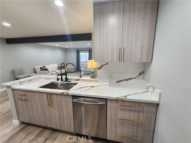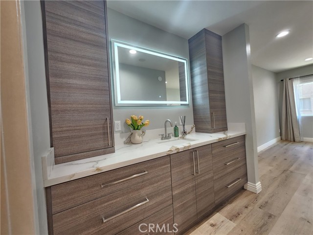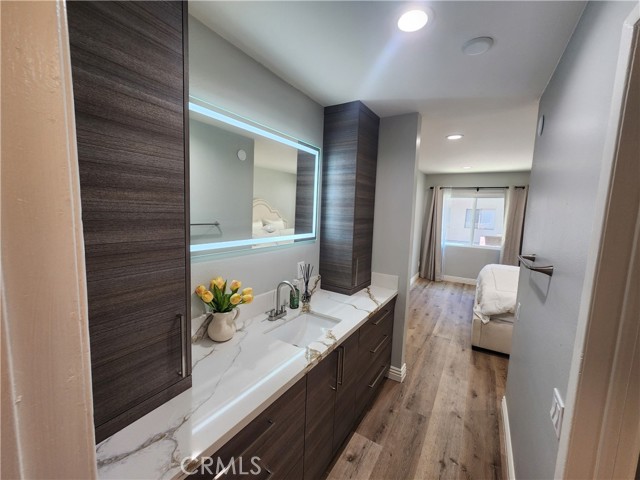 Gorgeous 2 bedroom -2 bath Condominium located in the heart of Encino. This unit has been completely upgraded with new custom kitchen cabinets, Quartz countertops, stainless steel appliances, vinyl flooring, central AC. This home provides 990 Sq ft of comfortable living space ,which is perfect for professionals or small households. The community has a pool, spa, sauna, recreation room, tennis court, gym. This unit is conveniently located near all shops, restaurants, freeways, hiking trails. Call today to schedule a showing!