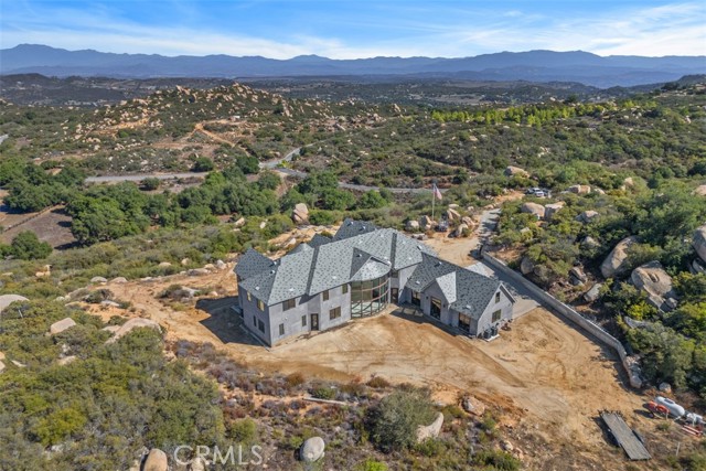 Welcome home to this Impressive Custom built estate with Stunning Million $$$ Views! Situated on 15.59 pristine acres within the prestigious La Cresta Highlands area. Imagine being King of the hill with the Cleveland National Forest just out you backyard! California's Best Kept Secret! A place where dreams come true! Featuring approximately 7000 square feet of living space with two separate stair cases, 4 bedrooms, 4 baths, formal living & dining, Chef's kitchen with massive pantry, office, theatre room, primary suite with vaulted ceiling, huge walk-in closet & partially finished luxury primary bath. The gourmet Chef's kitchen is designed for your personal choice of custom cabinetry, counter tops, faucet's and fixture's. It is equipped with Viking stainless steel appliances including dual oversized refrigerator's, oversized freezer, 8 burner cook range w/ two ovens, hood, microwave, dishwasher & trash compactor. Other features include exquisite custom steel doors, wrought iron railings, floor to ceiling windows, upstairs balcony, set up for future elevator, Lorex security system w/ 8 camera's, expansive laundry room with sink and loads of cabinets, huge walk-in attic storage, upstairs reading nook, interior fire sprinklers, propane line in formal living room for future fireplace, water line in pantry & above cook range in kitchen for future pot filler, high-end Vermont Slate roof, 22 foot ceilings, wired for data, sound & Cat 6, four-4 ton AC units,70 PSI pressure pump, 5000 gallon water storage tank, 4" & 1.5" outlets w/ fire hoses & great area's for executive pool, outdoor kitchen, guest home, barn, tennis courts, groves or anything else ones heart may desire! The estate is partially fenced with an exceptional estate gate entry! The property can also be sub-divided into 3 five acre parcels. Please see the supplement sheet for a list of items that need to be completed to obtain the certificate of occupancy. La Cresta Highlands Life offers exceptional opportunity for country living at its finest with twinkling star filled skies, scenic open space, private trail systems, Santa Rosa Plateau Ecological Reserve & lovely community events! Located within minutes from all modern conveniences, award winning schools, restaurants, premier golf courses, shopping malls, hospitals, world renowned wineries, resorts & I-15 freeway. Less than 1.5 hours from LA, San Diego, Palm Springs, Beaches, Mountains & Amazing Theme Parks. The epitome of peace & tranquility!