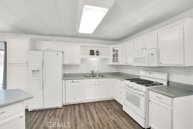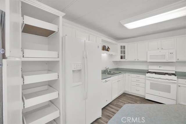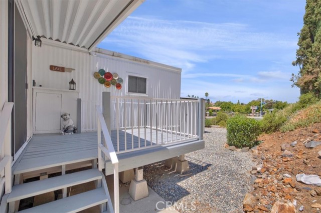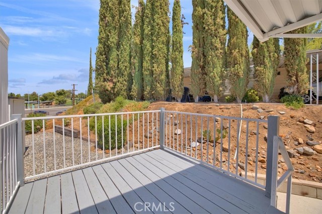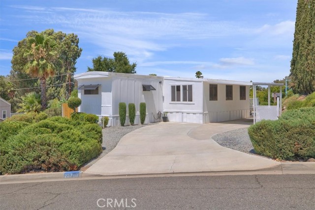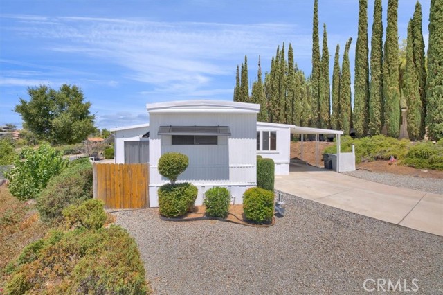 Have you been looking for affordable living in Southern California's premier, gated, waterfront community of Canyon Lake? Well look no further! This two bed, two bath home has plenty of features with a favorite being views of the golf course, surrounding community, local mountains and killer sunsets!! Welcome to the meticulously maintained 22780 Skylink Drive!! Upon entering you'll notice your living room offers an open and bright layout with updated wood plank vinyl flooring, 5" baseboards, and a flow directly into your kitchen and dining area. The kitchen offers newer appliances, 5burner gas cook top with grill in the middle, white oak cabinets, subway backsplash, a raised bar peninsula seating area, and full extension roll out shelves in almost all cabinets that offer ample storage! Your master bedroom hosts a healthy footprint with ample closet space, berber carpet and is located adjacent to the master bath with gorgeous counters and updated porcelain tile shower stall with grab bars for easy access! The spare bedroom has it's own en-suite half bath with wainscoting, wood plank vinyl flooring and plenty of closet space! Off the main living area and kitchen is your living room offering plenty of natural light and fres hpaint throughout. Other amenities include four new mini split AC system, new energy efficient 40 gal. water heater, indoor laundry, fenced rear yard area perfect for animals, covered aluminum patio in the rear, new rock/irrigation system/landscape, 6x10 storage shed, new mobile home piers under home for added support,raised 6 panel interior doors, covered parking with ample driveway space for an RV/boat/trailer and fresh exterior paint! Canyon Lake living offers a low 1.1% taxbase, 400 acre waterski/fishing lake, 16 parks most with beaches and playsets, basketball, baseball, tennis & pickle ball, equestrian center, 18 hole golf course,pools, dog park, BMX pump track, golf cart friendly streets, slalom course, ski jump, restaurants, community events and so much more!