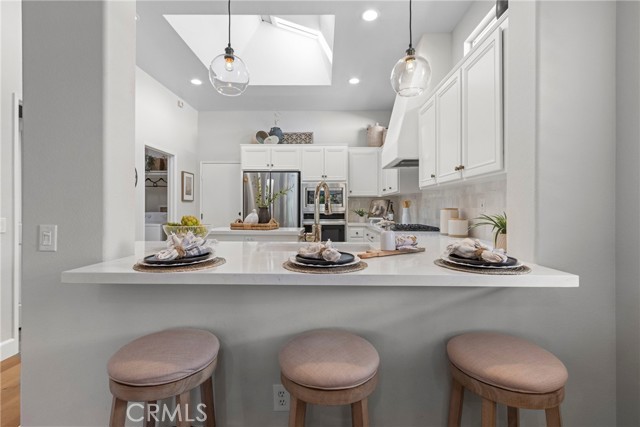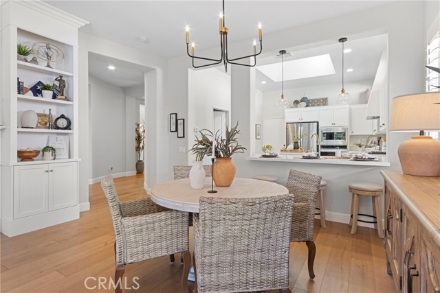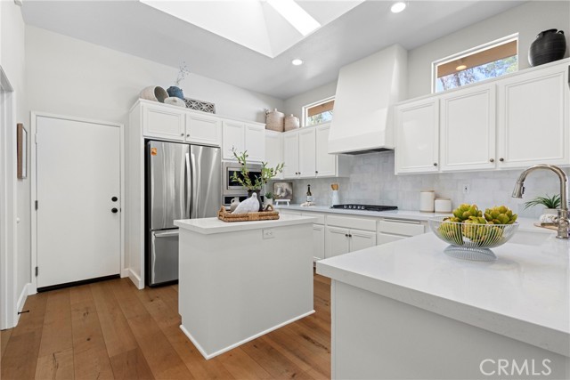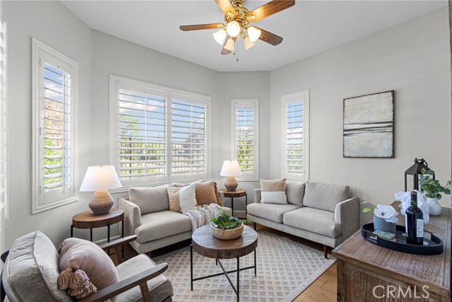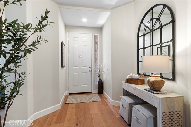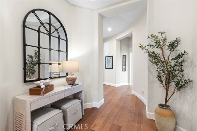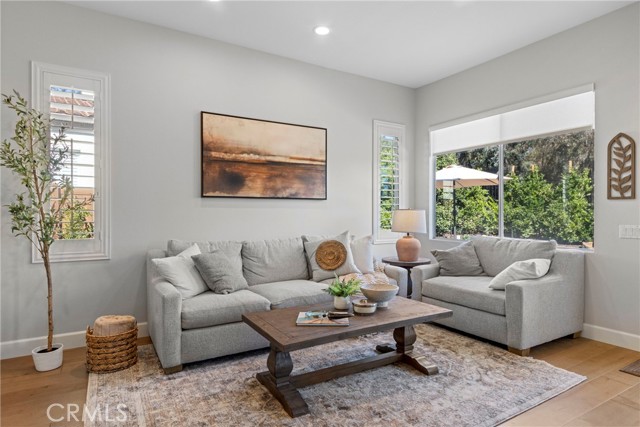 Splendor awaits in this rare, turnkey single-story home in the highly desirable Temeku Hills community! Ideally situated at the end of a quiet cul-de-sac with no rear neighbors, this property offers peaceful mountain views, exceptional privacy, and wonderful proximity to all that Temecula living has to offer. Enjoy easy freeway access and be just minutes from Wine Country, Pechanga Resort & Casino, Old Town, and top-tier shopping and dining. Step inside and instantly feel the warmth and sophistication of this pristine home, where pride of ownership shines throughout. Rich maple hardwood flooring, plantation shutters, and abundant natural light—enhanced by lovely kitchen skylights—create a bright, welcoming ambiance. A spacious den/flex room flows effortlessly into the open-concept great room, framing beautiful backyard and mountain views. The gourmet kitchen is a showpiece, boasting quartz countertops, elegant zellige tile backsplash, stainless steel appliances, a center island with storage, large walk-in pantry, and barstool seating—perfect for gatherings. Through elegant French doors, the primary suite is a serene retreat offering a custom-designed walk-in closet, an ensuite bath with dual sinks, vanity area, separate tub and shower, and a private water closet. The large laundry room with storage cabinets adds everyday convenience, while the secondary bedroom enjoys a charming view of the front garden and easy access to the full guest bath. Step outside to a low-maintenance backyard designed for relaxation and entertaining—complete with mountain views, open space behind the home, and a built-in gas line ready for your BBQ. Residents of Temeku Hills enjoy a premier resort-style lifestyle with access to a grand clubhouse, Olympic-size pool and spa, fitness center, sports courts, golf, tot lots, and beautifully maintained grounds.