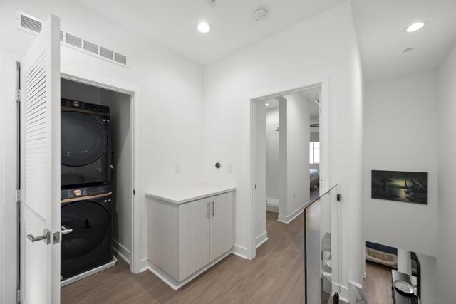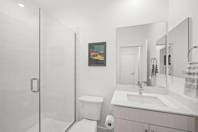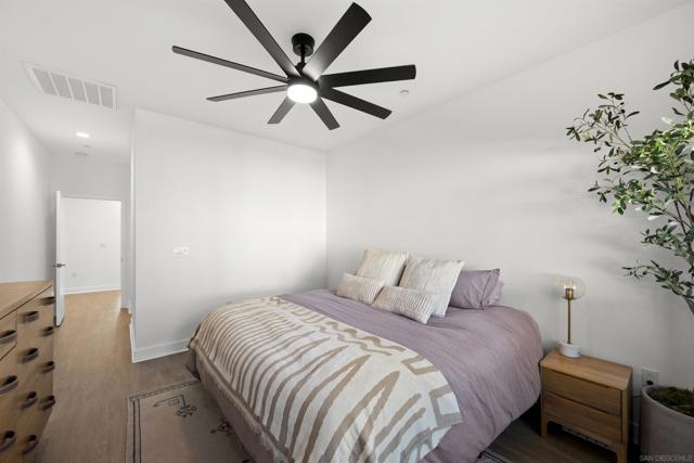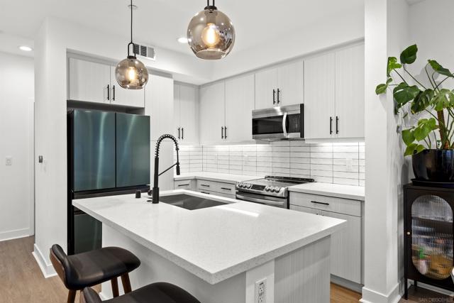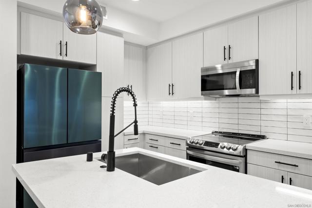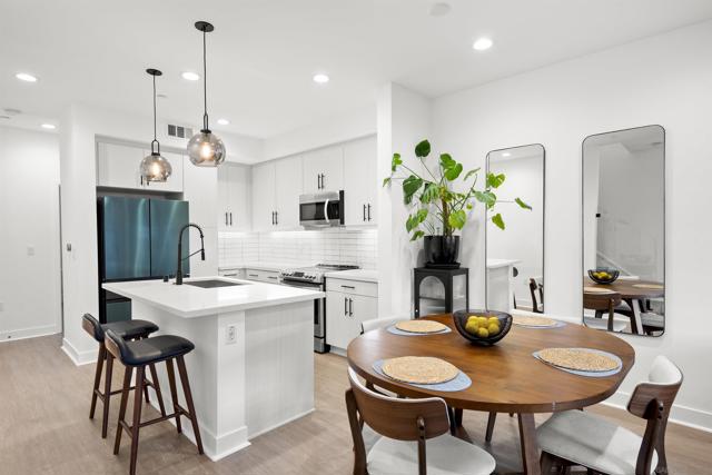 Welcome to 7621 University Ave, Unit 102 a modern, move-in-ready townhouse offering the perfect blend of style, functionality, and location. With 3 full bedrooms and 3 full bathrooms, this thoughtfully designed home showcases sleek upgrades and contemporary living just minutes from vibrant downtown La Mesa. Step inside to discover a bright, open-concept layout featuring luxury vinyl plank (LVP) flooring throughout, sleek modern glass railings that visually open up the space, and built-in ceiling surround-sound speakers for an elevated entertainment experience. The spacious living and dining areas flow effortlessly into a modern kitchen with stainless steel appliances and plenty of prep space ideal for gatherings or quiet nights in. Smart details continue throughout, including a custom-built nook that makes the perfect dog living space or coffee/dry bar, adding both charm and versatility. Upstairs, the primary and second bedrooms each feature private bathrooms, offering comfort and privacy for every household member. The primary suite includes a small walk-in closet and a large shower with a built-in bench and bottle enclave, designed for everyday luxury. The third bedroom and full bathroom are conveniently located on the main level, ideal for guests or a home office. Enjoy your own private, turfed patio with planter boxes perfect for creating a cozy outdoor retreat or growing a small home garden. The two-car garage offers secure parking and extra storage, while the low-maintenance community allows you to fully enjoy the best of La Mesa living without the upkeep. OWNED SOLAR