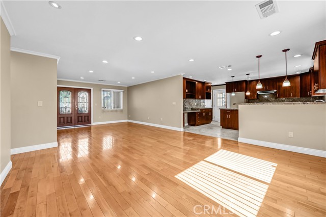 This beautiful 3 bedroom 2 bath home is perfectly positioned on a large corner lot with impressive curb appeal and expansive frontage. Designed for comfort and modern living this home features gleaming hardwood floors, sun filled interiors, and an open concept layout that's ideal for family gatherings and entertaining. The kitchen is complete with modern touches and an abundance of cabinets with center island integrating effortlessly to the living areas. Generous bedrooms offer plenty of space for rest and relaxation with modern bathrooms to add a touch of style and convenience. This home features a private gated entrance, beautifully maintained landscaping, and a two-car garage with additional driveway parking.