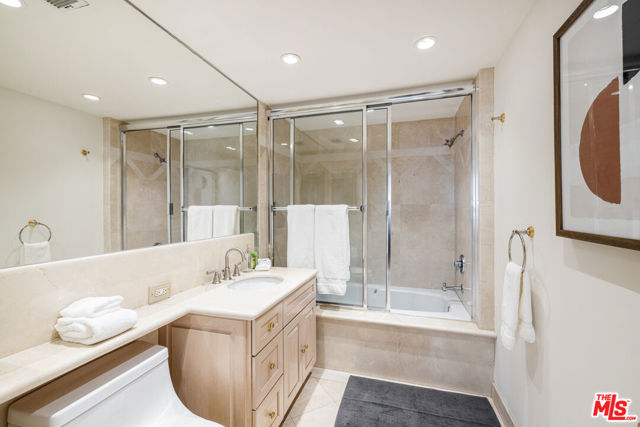 Large two bedroom, two bathroom condo in Century Towers in Century City. The unit has breathtaking unobstructed North and East facing Century City and Beverly Hills skyline views, considered to be the best unit stack in the building. Recently renovated with custom cabinetry, stainless steel appliances, a Subzero fridge, and natural stone floors. Amenities of this guard gated community include 24 hour security, a doorman, pool, gym, and tennis courts.