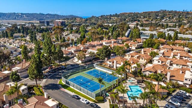 Welcome to your beautifully upgraded turn-key end-unit townhome, ready for you to move right in. Step outside to a bright, south-facing patio—newly tiled and perfectly elevated above the walking paths. Enjoy serene views of park-like pine trees and the rolling canyons and hills of Torrey Hills. The modern kitchen features stone countertops, tiled backsplash, and sleek stainless steel appliances—all oriented toward tranquil tree and hillside views. A sliding glass door provides direct access to the patio, ideal for entertaining with drinks and appetizers. The living room boasts vaulted ceilings, recessed lighting, and a cozy fireplace, creating the perfect retreat for winter evenings. It opens seamlessly to the spacious patio and its sun-filled, south-facing vistas. The bathrooms are finished in premium stone and tile, while the primary suite features a luxurious walk-in shower with dual shower heads. Additional highlights include dual-pane windows for superior quiet and insulation, central heating and air conditioning for year-round comfort, and a new energy-efficient on-demand gas water heater. The attached garage offers generous storage space and newly refinished, sealed floors. Enjoy resort-style living with a community pool, spa, and tennis courts, all in a beautifully maintained setting. Located just minutes from the shops and restaurants of Piazza Carmel, One Paseo, and Del Mar Highlands, as well as top-rated schools, the library, recreation center, the SR-56 bike path, and Torrey Pines State Beach. Experience the perfect blend of comfort, style, and location.