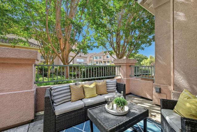Welcome to the pinnacle of luxury living in this upgraded townhouse, ideally located in Fremonts highly sought-after Ardenwood neighborhood with access to top-rated schools. The gated front entry opens to a serene patio, leading into a bright, soaring-ceiling living space featuring gleaming hardwood floors and a cozy marble-accented fireplace. A formal dining area flows effortlessly into the eat-in kitchen perfect for everyday family meals or entertaining guests. The kitchen boasts new quartz countertops and opens to a private balcony, ideal for morning coffee or relaxing evenings under the sky. Upstairs, discover three generously sized bedrooms, enhanced with hardwood flooring and double-pane windows. The primary suite impresses with a vaulted ceiling, walk-in closet, and a spa-like ensuite bathroom with dual sinks offering a true retreat. As part of the desirable Capriana community, residents enjoy a sparkling pool and spa, all with low HOA dues. The prime location offers unmatched convenience walking distance to parks including Ardenwood Historic Farm, Coyote Hills, and Karl Nordvik Park, with easy access to shops and restaurants, highways 880/84 Dumbarton Bridge, and major Silicon Valley employers. This home is truly a must-see for families and professionals alike.