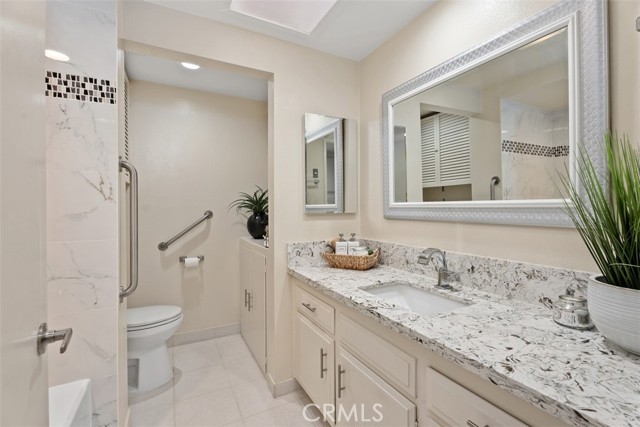 Discover the perfect blend of style and comfort in this charming Castilla upper-level, single story 2 BR, 2 BA condo located in the premier 55 and over community of Laguna Woods. This beautifully maintained residence offers an open floor plan with an abundance of natural light, creating a warm and inviting atmosphere. Step into the spacious great room, where you can relax or entertain guests while enjoying the open views from the oversized balcony and wall of windows. The home features dual pane windows and a slider, ensuring energy efficiency and tranquility. The bright kitchen boasts granite countertops, white cabinets, and seamlessly opens to the dining room, perfect for hosting dinners with friends and family. With two spacious bedrooms and two remodeled bathrooms, this condo provides ample space for comfort and privacy. The bathrooms are adorned with quartz countertops and updated fixtures, adding a touch of elegance. Wood laminate flooring throughout enhances the home's appeal, and there's plenty of storage space to keep everything organized. Residents of this fabulous community have access to a wealth of amenities designed for an active senior lifestyle, including golf, tennis, pickleball, a clubhouse, and so much more. Conveniently located with easy access in and out from Gate 6, this is a home you do not want to miss. Fresh, clean, and ready for you to move in—come live the lifestyle you deserve at Laguna Woods!