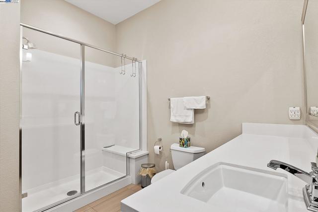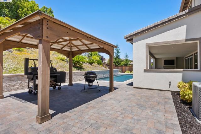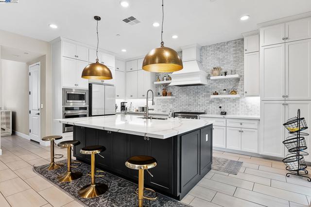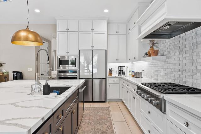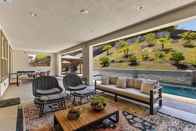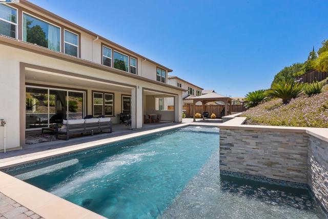 Pure luxury in the prestigious gated community of Lark Hill! Nestled in the scenic hills of Brentwood, this highly upgraded home was built in 2020 and offers impeccable design and luxurious finishes throughout. The heart of the home features a show-stopping kitchen with crisp white cabinetry, floating shelves, a rich dark grey island, gold-accented backsplash and hardware, and statement pendant lighting. A spacious bonus room upstairs adds flexibility for work, play, or relaxation. The spa-inspired primary bathroom is a true retreat, featuring a freestanding soaking tub, dual shower heads, and elegant finishes that create a serene, resort-like experience. Step outside to a California room complete with a gas fireplace and mounted TV, ideal for year-round entertaining. The luxury pool is a showstopper, with multiple lounging shelves and an endless swim system for fitness and fun. Attached to the home is a fully equipped in-law/au pair/ADU unit with its own kitchen and full bath, perfect for guests, multigenerational living, or rental potential. Experience elevated living in the coveted Lark Hill gated community,this home is the epitome of elegance, comfort, and California lifestyle.