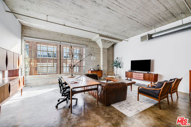 Discover the iconic Toy Factory Lofts, a highly coveted Live/work loft community in the vibrant Arts District of DTLA. This remarkable penthouse loft, a rare find, boasts an expansive open floor plan with impressive 12-foot ceilings, concrete flooring, and striking columns. The loft is illuminated by oversized industrial-style windows recently upgraded with new glass and motorized shades, facing south to invite abundant natural light throughout the space. Recent upgrades include kitchen appliances, including a Bosch gas stove, Samsung refrigerator and dishwasher, and a convenient LG front loading stackable washer-dryer. Building amenities enhance the living experience, offering a secure lobby with a 24-hour doorman, a rooftop pool surrounded by a sun deck that provides breathtaking views and a cozy fire pit, as well as a third-floor communal deck with lush green spaces, barbecue areas, and a two-story gym. Residents will also benefit from an indoor, secured parking space in the attached private garage. Conveniently located just steps away from Hank's Organic Market, Camila, Bestia, Bavel, The Soho House, Factory Kitchen, The Bike Shed Moto Co, and Hauser & Wirth Gallery, this vibrant neighborhood offers an abundance of dining, shopping, and cultural experiences to enjoy.