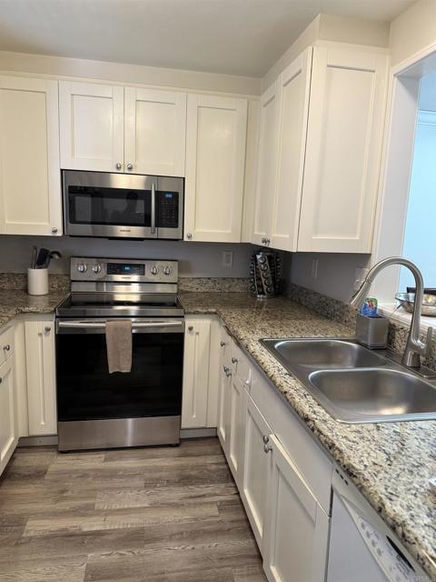 Experience coastal living in this beautifully upgraded and fully furnished 2-story La Jolla condo, ideally located just steps from UCSD, shopping, restaurants, and everyday conveniences. This quiet, well-maintained community offers easy access via stairs or elevator. The bright, open living area features LVP flooring, a fireplace, and a sectional sofa that converts into a queen sleeper. Enjoy morning coffee on the private balcony. The remodeled kitchen includes granite counters, updated appliances, and ample storage. Upstairs, the primary bedroom offers a queen bed and walk-in closet; the second bedroom features an eastern king that can convert to two XL twins. Additional highlights include an upgraded bath, in-unit washer/dryer, assigned parking with storage, and resort-style amenities—heated pool, spa, gym, clubhouse, and tennis courts. Close to UCSD, beaches, and La Jolla Village.