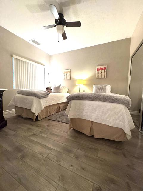 This MANHATTAN MODEL is located in an exceptional desert retreat inside the prestigious, manned guard-gated community of Indian Springs Golf Club. This beautifully maintained 3-bedroom, 3-bath home offers the perfect blend of resort-style comfort, privacy, and elegant desert living--ideal for full-time residents or seasonal buyers seeking the best of the Coachella Valley lifestyle.As you step inside, you'll be greeted by a formal rotunda entrance then into the spacious open-concept great room area with vaulted ceilings, designed for entertaining. The inviting great room features an upgraded gas fireplace with log set, creating a cozy and elegant focal point for relaxing evenings. The entire home was remodeled with 6x24 inch porcelain tile floors and new paint which gives the entire home an upgraded modern look. The chef's kitchen boasts granite countertops, premium cabinetry, and a breakfast bar that flows seamlessly into the dining area, and great room, all overlooking the pool/spa and golf course.The primary suite offers comfort and style with golf course views, a double vanity, jacuzzi tub and separate shower stall and last but no least a large walk-in closet. The two additional guest bedrooms provide ample space for visitors or a home office. One of the bedrooms is considered a casita with its own bathroom and an exit door to the front porch. The 2-car garage offers built-in storage and easy access and the interior laundry area is near garage and kitchen access for those shopping sprees. Step outside to your own private desert oasis--a Pebble Tec pool and cascading spa, surrounded by a spacious patio for lounging or hosting gatherings with friends. Enjoy the panoramic golf course views of the par-3 hole #3 while soaking in the tranquility of resort life.Indian Springs residents enjoy two fully equipped fitness centers, two large lap pools, and BBQ areas for outdoor dining. Known for its impeccable course conditions, Indian Springs Golf Club features some of the best rolling greens in the desert--true 10s!The LOW HOA fees include front yard landscape, tree trimming and seasonal flowers. ISCC is centrally located near world-class golf courses, polo grounds, the Indian Wells Tennis Garden (home of the BNP Paribas Open), and the famous Coachella and Stagecoach music festivals, this home offers the ultimate in location and lifestyle and just minutes away to casual or fine dining, shopping and big box stores.