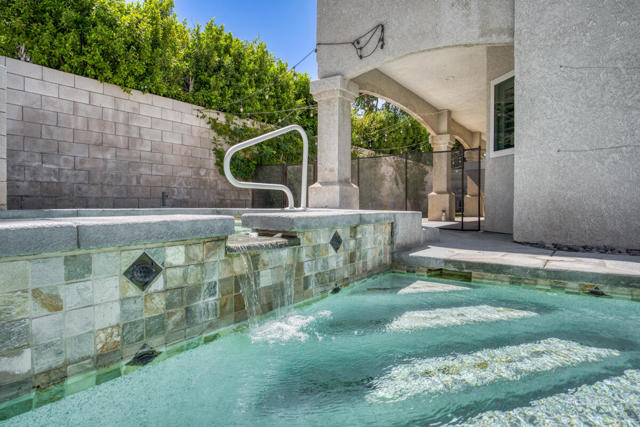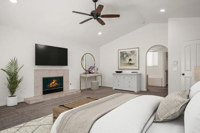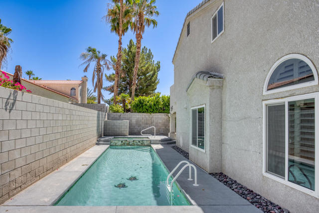 Located in a highly desirable Primrose neighborhood with no HOA. This beautiful family home has 4 bedrooms and 3 full bathrooms with a private in-ground saltwater pool and spa and front yard desert landscaping. Enter through double doors into a formal entry with a wood featured wall and an open floor plan offering a formal living room with vaulted ceilings, formal dining area, gourmet kitchen with granite slab counters and stainless steel appliances. There's breakfast bar seating opening into a large family room with a fireplace and built-in wet bar with granite counter, 2 built-in desk areas, a bedroom with ensuite bathroom and a laundry room that completes the main floor. Upstairs you will find 3 more bedrooms including a massive primary suite with fireplace, a walk-in shower, soaking tub, and His and Hers walk-in closets and a wrap-around balcony with panoramic mountain views. There are 2 more bedrooms that also access the balcony and there is a full size hall bathroom for the secondary bedrooms to share. This home also features plantation shutters throughout, french doors, ceiling fans, dual A/C, Wainscoting, recessed lighting, an attached 2-car garage with electric car plug-in, and a bonus room in the garage. The private back yard has a gated saltwater pool and spa, side yard with covered patio, artificial turf and cement area -- this is a perfect space for entertaining. Schedule your private tour today. Mortgage savings may be available for buyers of this listing.