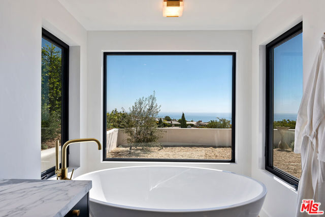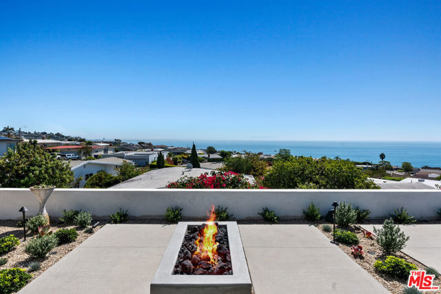 Wake up to breathtaking ocean views in this contemporary coastal retreat, perfectly nestled in nature and situated at the top of highly desirable Sunset Mesa. Enjoy panoramic vistas of the Queen's Necklace, Pacific Ocean, and Santa Monica Mountains from this exquisite, remodeled single-level home featuring 3 bedrooms plus an office/den and 3.5 baths. Completed in 2022, the home showcases an open floor plan with retractable Fleetwood doors, high ceilings, imported white oak floors, heated floors in the main bathroom for added comfort and a chef's kitchen. The expansive outdoor patio with a fire pit and sweeping ocean views offers the perfect setting for relaxation, entertaining, and unforgettable sunsets. Additional features include a two-car garage with EV charger, security system, Sonos sound, laundry room, and pantry. This residence embodies the essence of the coveted California coastal lifestyle, just moments from pristine beaches, hiking trails, Pacific Palisades Village, and Malibu's premier dining and shopping destinations. Offered fully furnished, gardener included. Just bring your toothbrush!