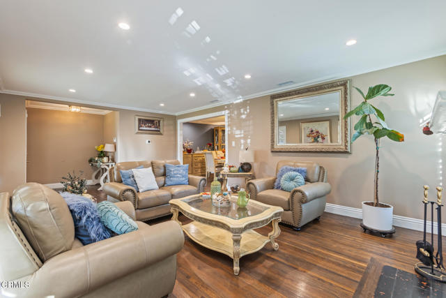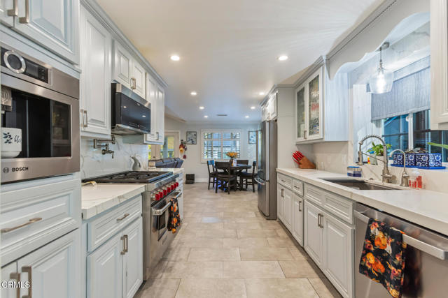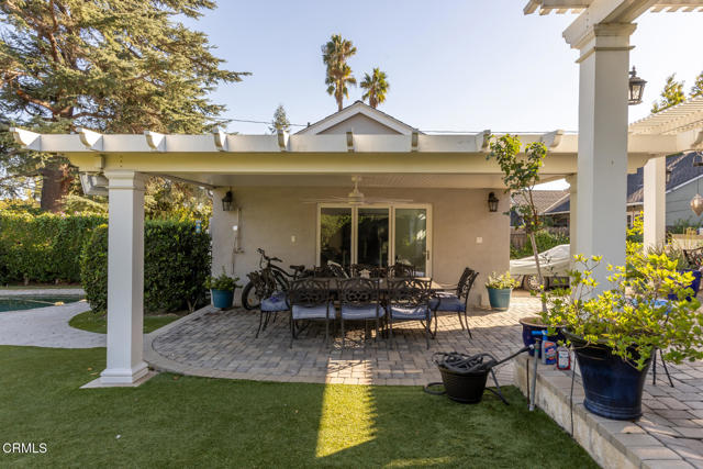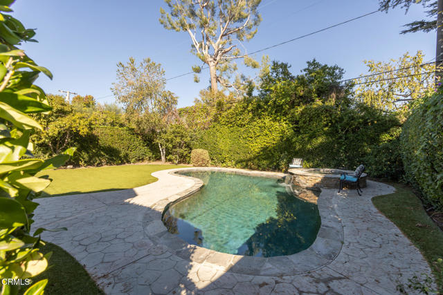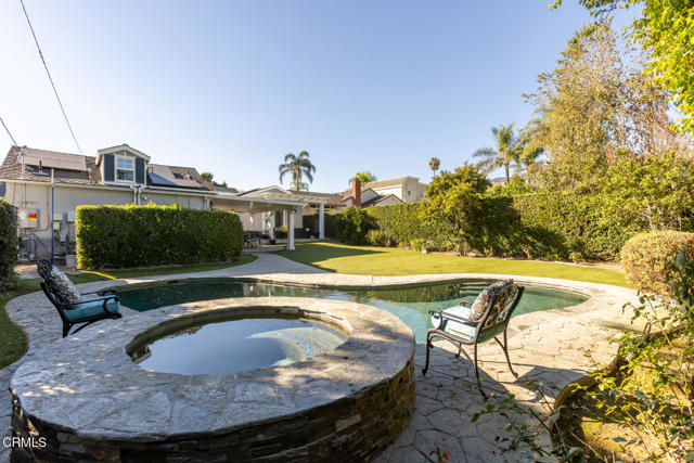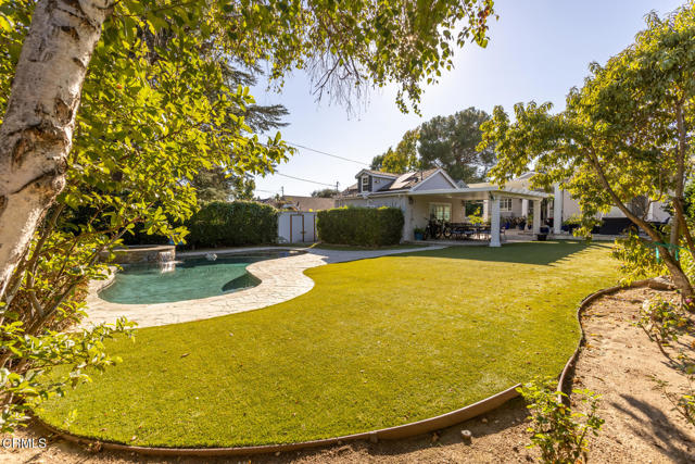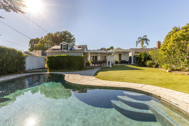 Welcome to this beautifully updated single-story home in La Canada. The property offers a spacious main residence with 4 bedrooms and 4 bathrooms, along with a separate studio complete with its own bathroom, laundry, and kitchenette--perfect for guests, extended family, or a private workspace. The main home features an elegant formal living room with a fireplace that opens to the formal dining area, creating a warm and inviting space for entertaining. Designed for everyday living, the family room seamlessly connects to the kitchen, which is equipped with stainless steel appliances and an informal breakfast area. The primary suite includes a generous walk-in closet and a luxurious bathroom with dual sinks, a soaking tub, and a walk-in shower. The backyard is an entertainer's paradise, featuring a large pool and spa, a covered BBQ area, a dining space with a ceiling fan, and a spacious grassy lawn--ideal for outdoor gatherings and relaxation.