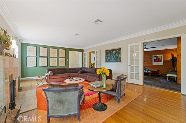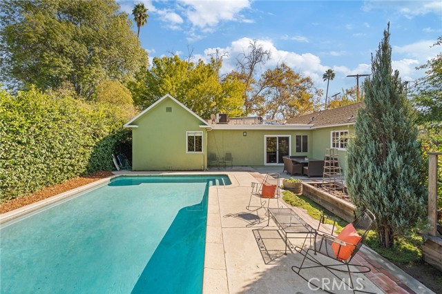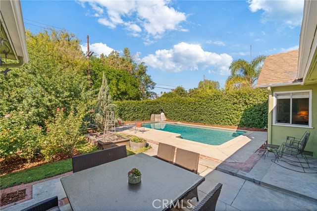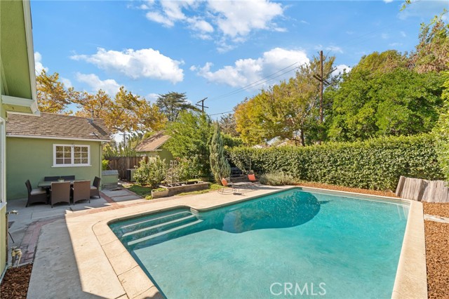 Fall in love with this gorgeous single level Pool home in the heart of Sherman Oaks.3 bds, 2 bath*, Formal Living Room, Formal Dining, Family Room - nearly 1900 Sq. Ft. on a 9000+ lot, bright, airy - many windows, sliding glass doors and French doors allow sunshine and natural light into almost every room throughout the day. Step inside to a spacious floor plan with an inviting flow that’s move-in ready. Formal Dining w/ designer wall moldings, Formal Living room w/ peg and groove wood floors and elegant fireplace, crown molding, two sets of double French doors that lead out to the brick patio and park like yard with real grass, fruit trees and an epic Elm tree complete w/ teeter totter for hours of play. Chef's kitchen - 6 burner Stove, double oven, w/granite counters, stainless steel appliances, custom cabinetry all showcased with 15 ft A-frame ceiling and exposed attic window, cozy breakfast seating that looks out onto the rose garden and has direct access to rear yard and BBQ, Huge family room with pitched ceiling, recessed lighting, graced w/horizontal wood plank walls - feels like you're watching TV in a groovy rustic, mid century cabin. Step out to the back yard patio, lounge, dine, swim, garden - spend hours outside in a property that truly is built for indoor/outdoor living. Enjoy the 6 ft. tall wooden fence and lush hedges completely surrounding the property, offering ultimate privacy, security and safety. A detached two-car garage and expansive yard provide plenty of space and flexibility for storage, recreation, or potential future enhancements. A true beauty in a spectacular neighborhood is waiting for you.