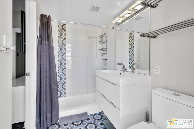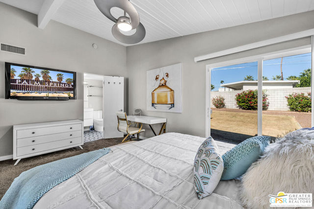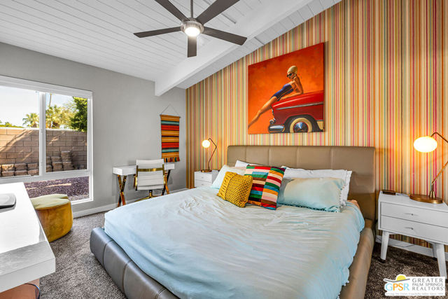 This truly exceptional midcentury modern home, located in the Racquet Club Estates in Palm Springs, was designed by famed architects Palmer and Krisel and built in 1959, by the Alexander Construction Company. This post and beam home, renovated as of 2020, offers 3 bedrooms and 2 baths, all showcasing its original tongue and groove ceilings and post and beam construction. Extra square footage was added to create a large dining area which is open to the kitchen and overlooks the pool and spa. Look up and you will love the views of the mountains through the large clerestory windows. The spacious chef's kitchen, which features a large center island with beautiful quartz counters, custom cabinetry and backsplash, as well as Kitchen-Aid stainless steel appliances, is perfect to unleash the chef in you. Step outside onto the expansive 1/4 acre lot and admire the recently renovated and re-imagined oversized pool and spa with its inviting tanning shelf. The lot is large enough for RV parking. This home is perfect as a primary residence, a part time getaway, or a vacation rental (Junior permits only). Contact agent for more info.